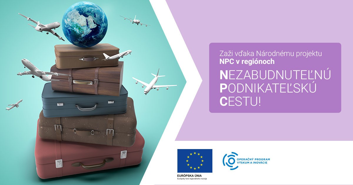Podpora podnikania v 7 samosprávnych krajoch Slovenska sa realizuje v rámci Národného projektu NPC v regiónoch, ktorý je spolufinancovaný Európskou úniou z Európskeho fondu regionálneho rozvoja v rámci Operačného programu Výskum a inovácie. Kód projektu ITMS2014+ 313031I870.