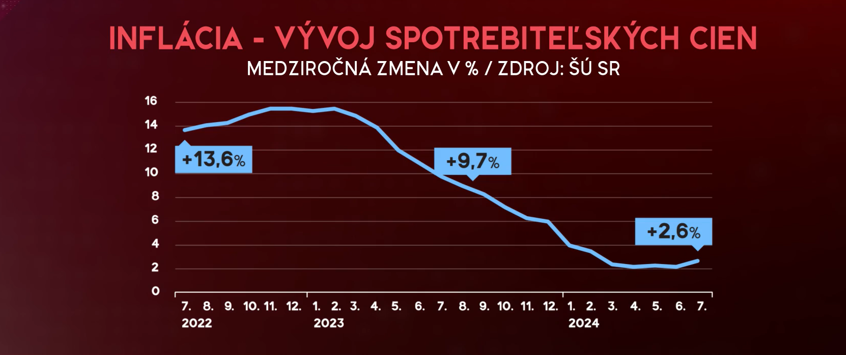 Tak ako pominú aj letné horúčavy analytici upokojujú, že nenastane taký inflačný armagedon ako spred dvoch rokov. Určite nie sme ani tam, kde sme boli. Môžete to vidieť na krivke inflačného grafu od júla 2022.