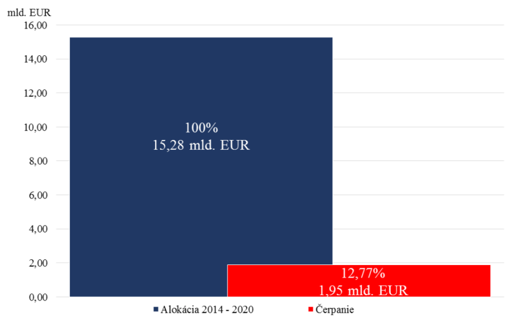 Dnes, na konci roka 2018 je čerpanie eurofondov na Slovensku na úrovni necelých 13 %. Peniaze pridelené v tomto programovom období 2014-2020 môžeme čerpať do konca roka 2023. V presnej polovici sme vyčerpali necelých 13%. Prešlo 50% času, vyčerpali sme 13% peňazí.