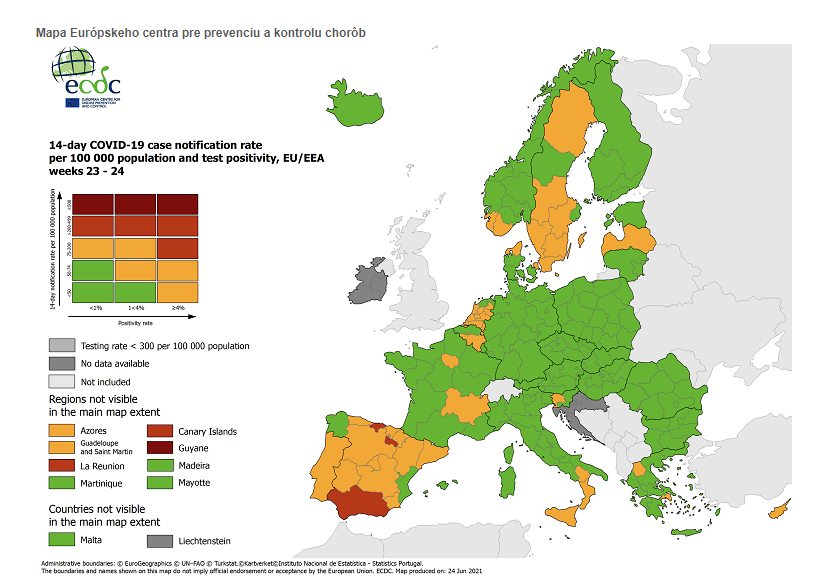 - Slovensko je zaradené od 24. júna do zelenej kategórie