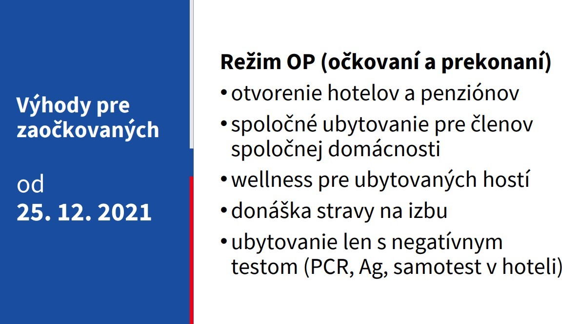 SLOVENSKO / Od 25. decembra nastane uvoľnenie opatrení pre očkovaných a prekonaných. V režime OP budú platiť určité výhody v rámci ubytovacích služieb a gastronómie.