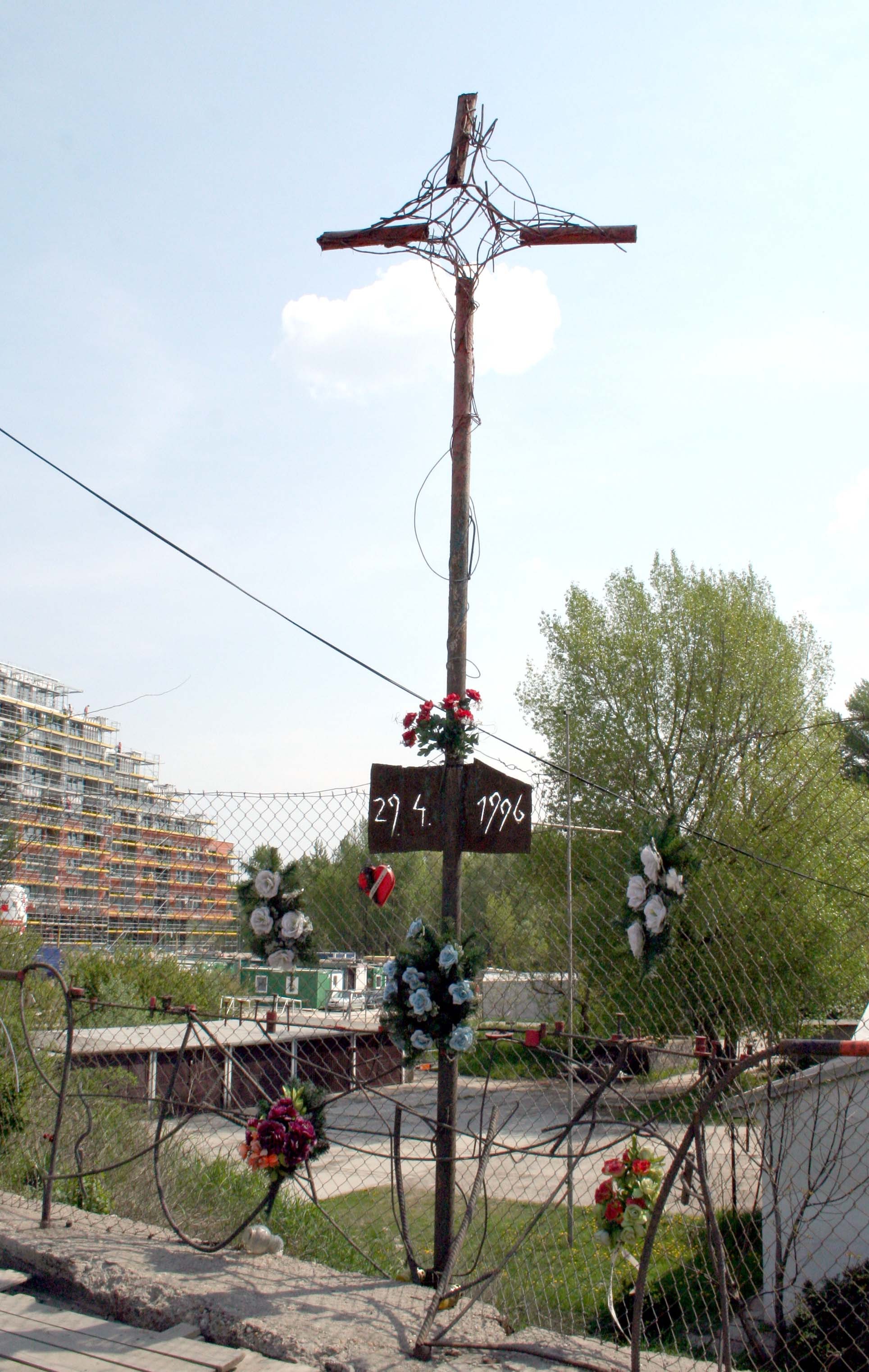 Kríž na mieste výbuchu auta Róberta Remiáša:
