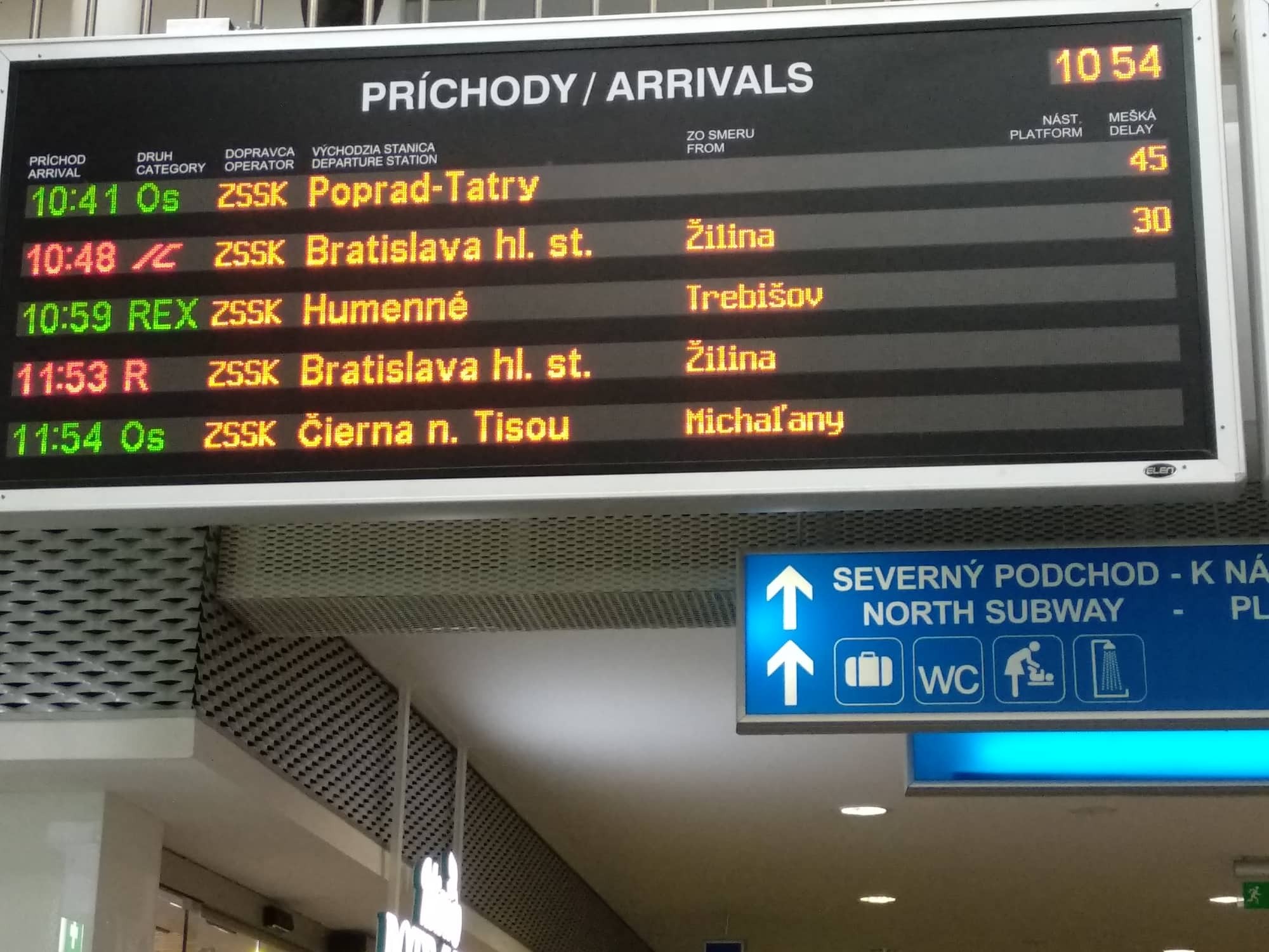 Na hlavnej vlakovej stanici v Košiciach hlásia meškanie vlakov do Bratislavy a Poprad -Tatry niekoľko minút. Aktuálne meškania vlakov nájdete TU: