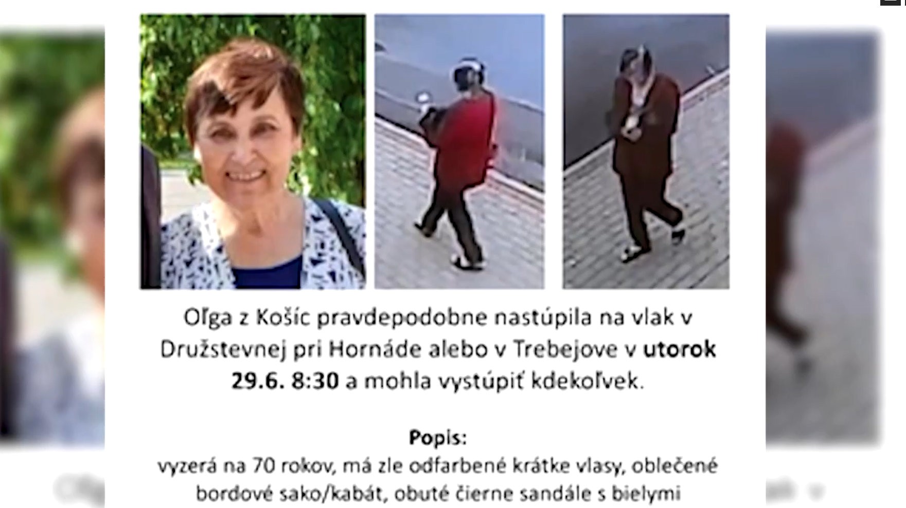 KOŠICE A OKOLIE / Pani Oľga z Košíc je nezvestná už dva týždne. Obaja synovia, známi a polícia po nej pátrajú už od prvého dňa keď neprišla domov. Minulý týždeň sa pridalo asi 300 ľudí. V akcii boli dobrovoľní hasiči, kynológovia, zdravotníci a policajný vrtuľník.