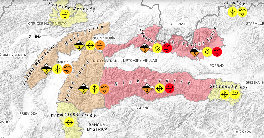 Mimoriadne nebezpečné sú južné, juhovýchodné, juhozápadné a východné orientácie. "Uvoľnenie lavín je možné už pri malom dodatočnom zaťažení, obzvlášť na strmých svahoch. V niektorých prípadoch hrozia stredné lavíny, výnimočne aj veľké spontánne lavíny. Pohyb v horskom teréne sa neskúseným turistom či skialpinistom neodporúča," zdôraznil.