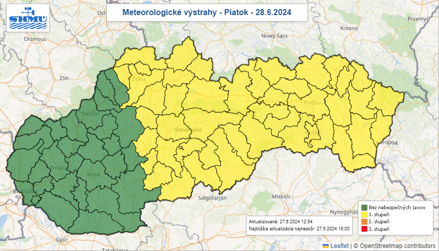 Výstrahy budú platiť aj v piatok (27.6.)