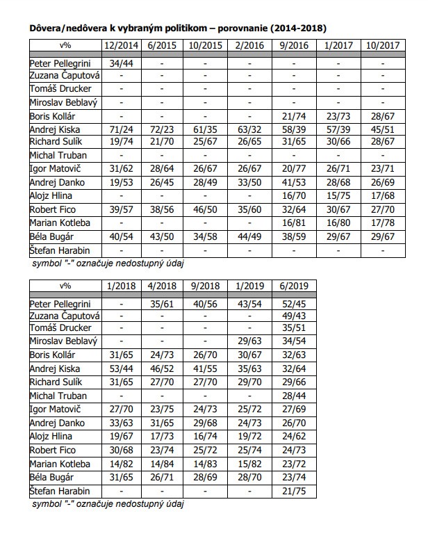 "Do akej miery dôverujete alebo nedôverujete nasledujúcim politikom?"