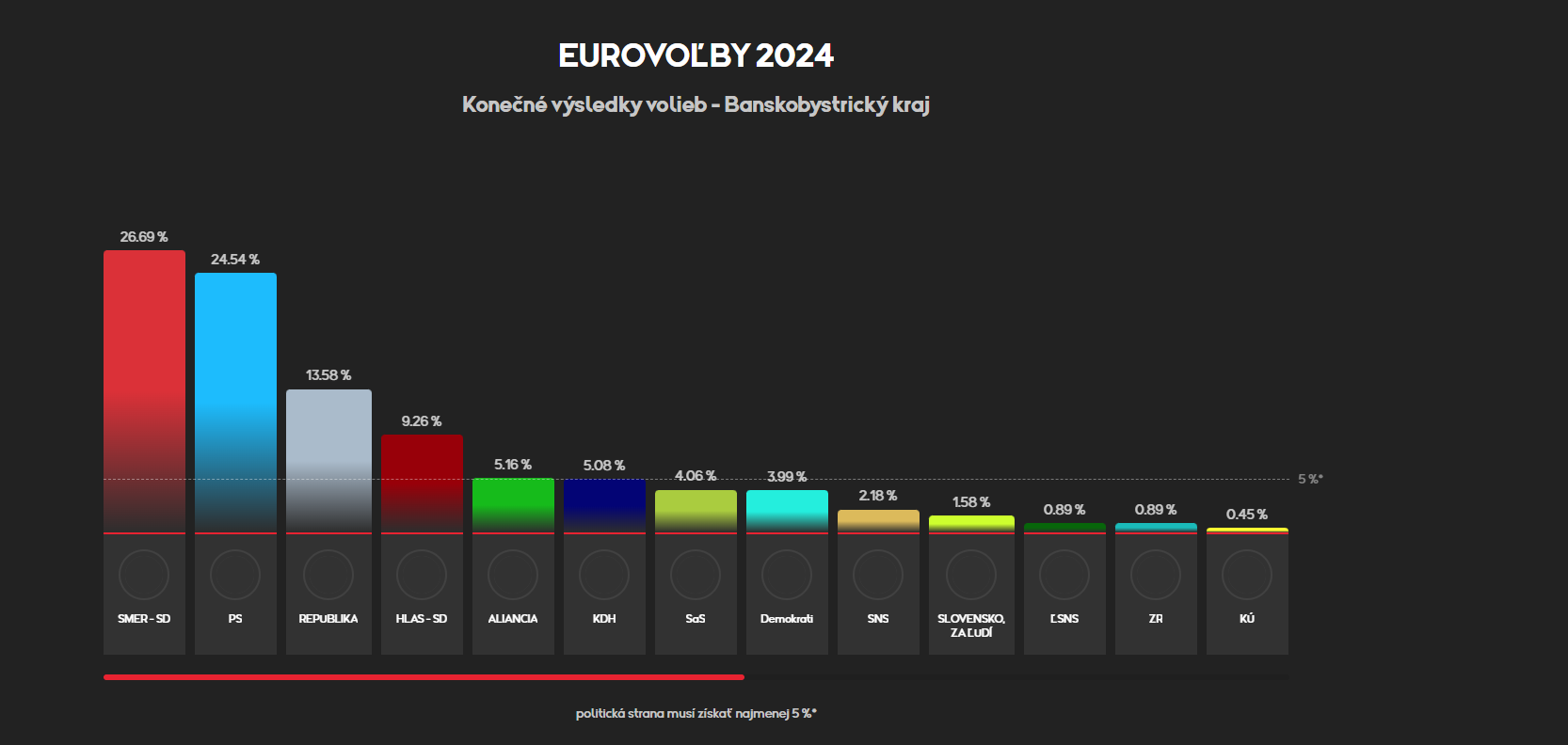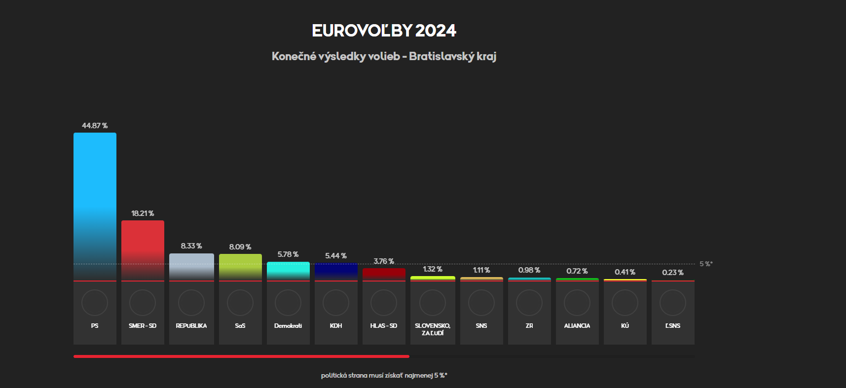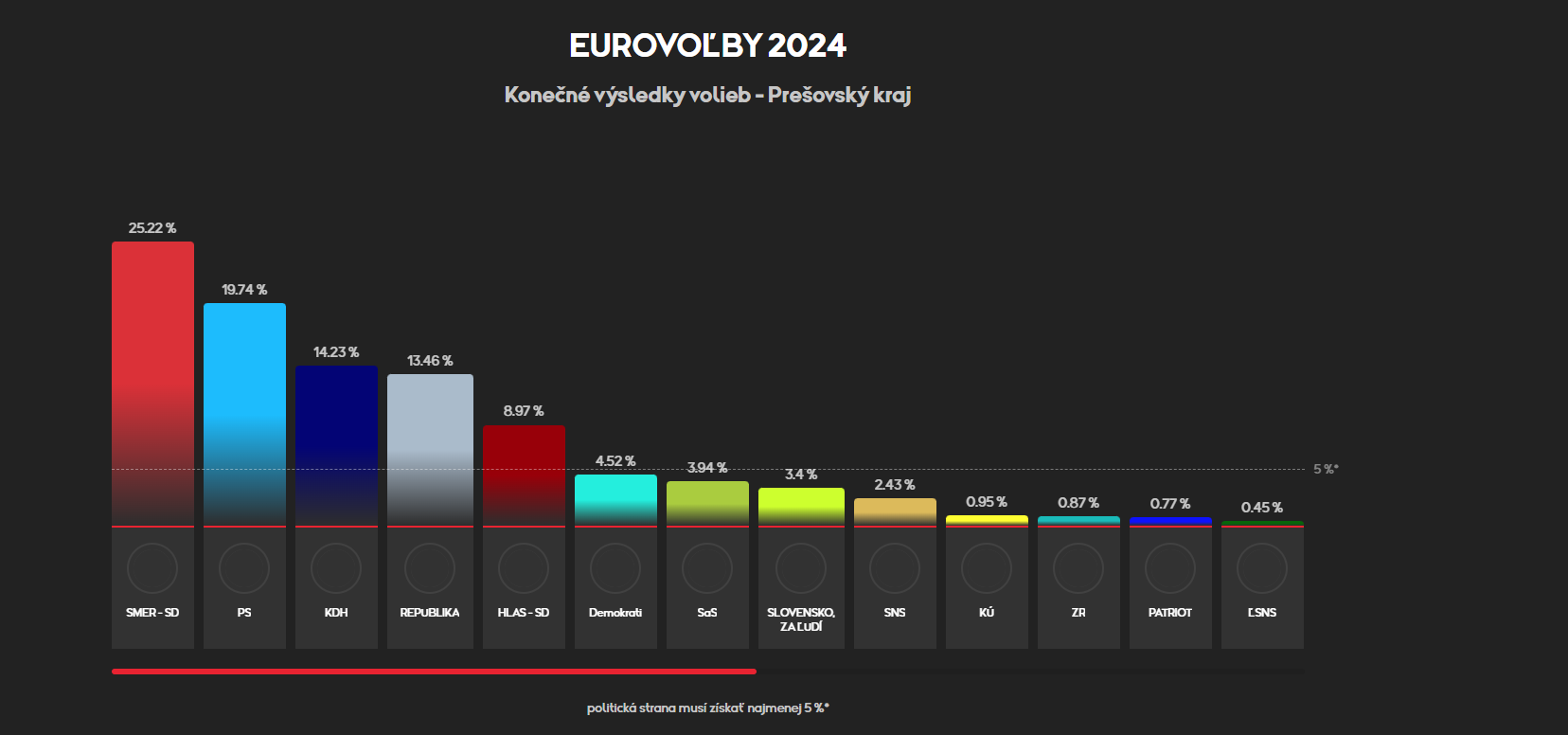 BRATISLAVA / Eurovoľby sa na Slovensku konali 8. júna. Výsledky sa verejnosť dozvedela 9. júna v noci. Víťazom sa stala strana PS, ktorá bude mať v Európskom parlamente 6 mandátov. Do Európskeho parlamentu sa dostala aj strana Smer-SD, hnutie Republika, KDH aj strana Hlas. Pozrite sa, ako sa volilo v jednotlivých krajoch a okresoch na Slovensku.