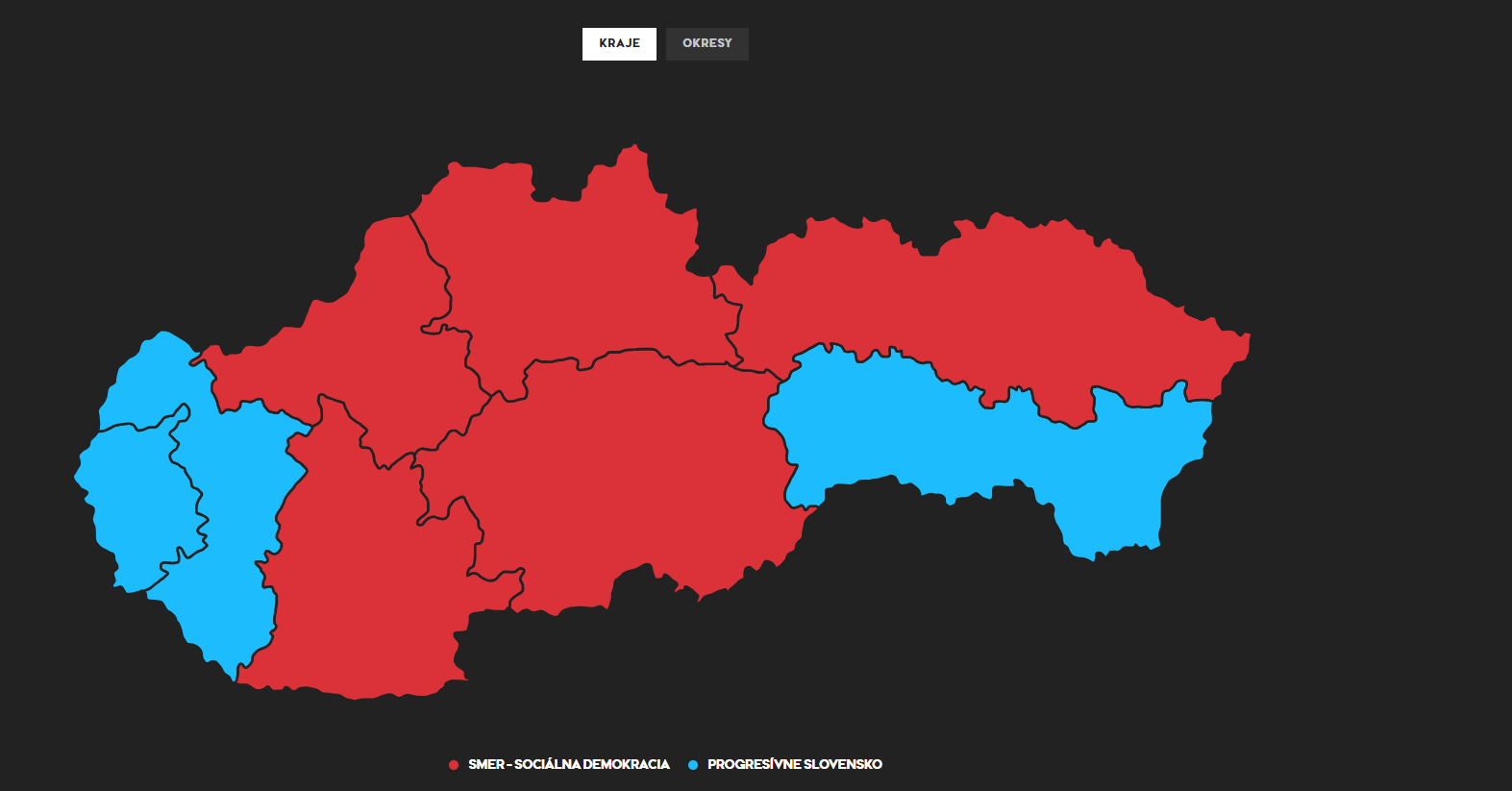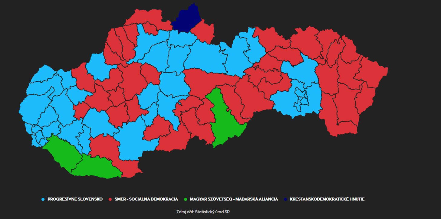 PS zvíťazilo v týchto okresoch:
