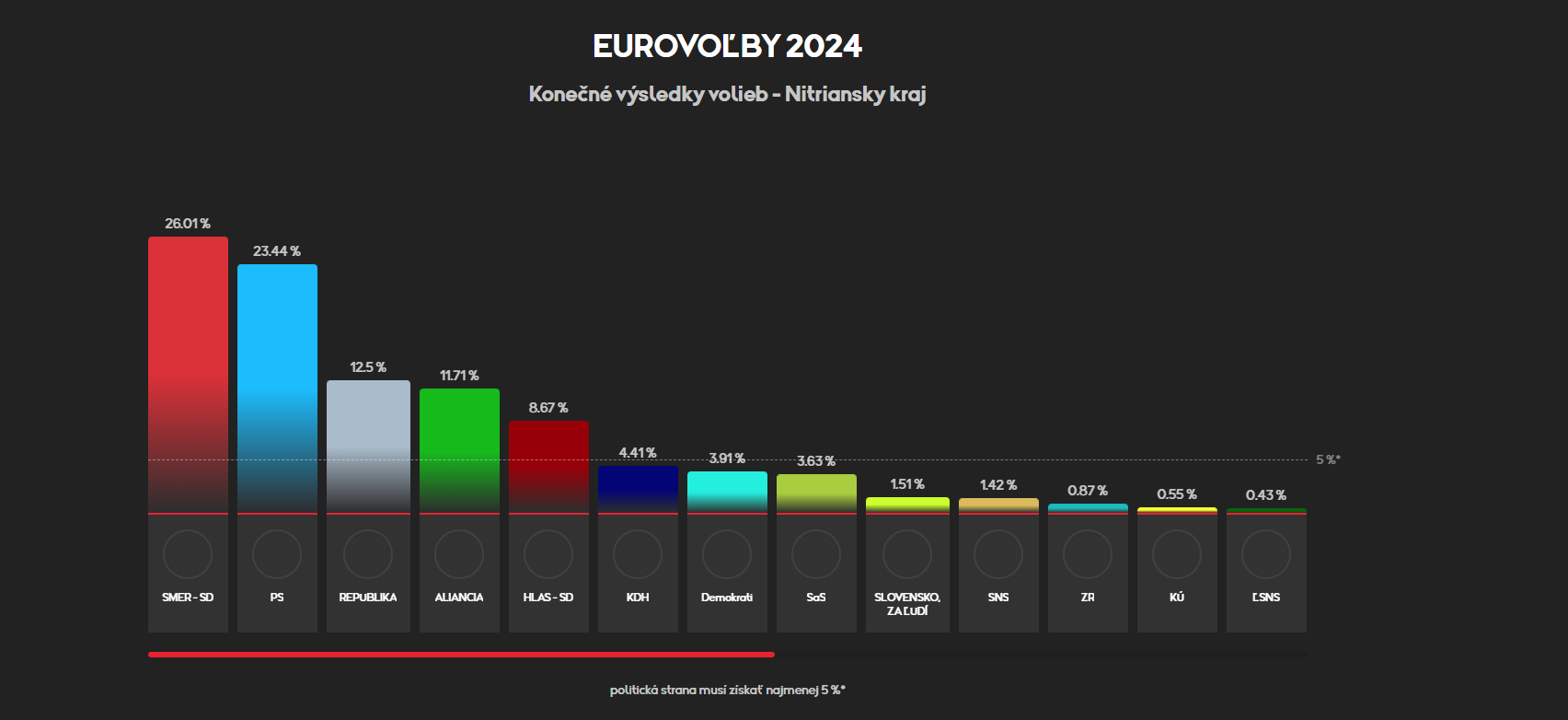 Smer volila väčšina voličov v Nitrianskom kraji, nad PS mali takmer 3-percentný náskok.