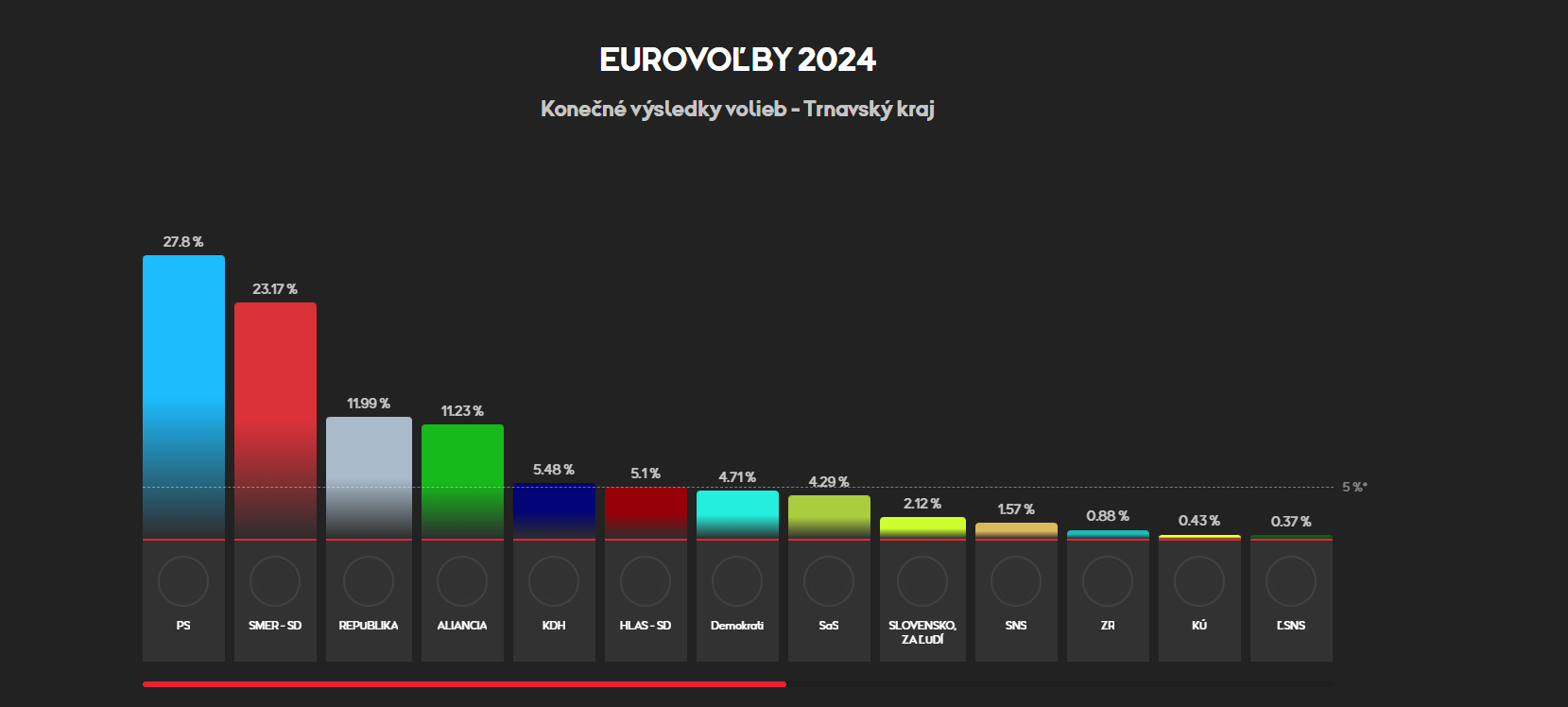 Strana PS vyhrala v každom okrese v Trnavskom kraji, okrem Hlohovca. Tam by eurovoľby 2024 vyhral Smer s viac ako 7-percentným náskokom. Do Európskeho parlamentu by sa tu dostala aj Aliancia, ktorú v Trnavskom kraji volilo 11,23 percent voličov.