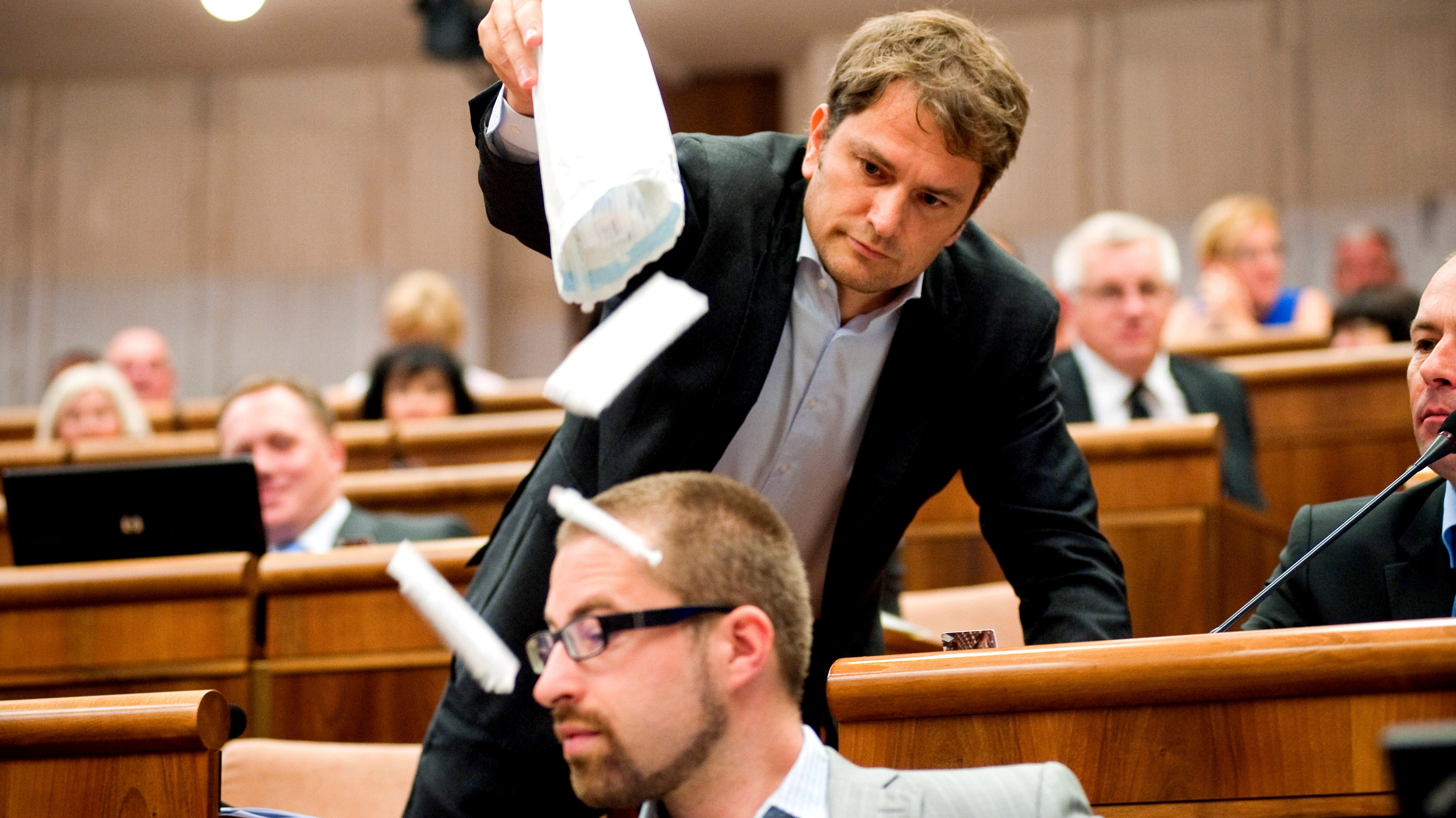 Prvé septembrové rokovanie parlamentu sa začalo roztržkou. Šéf OĽaNO Igor Matovič vysypal poslancovi SaS Martinovi Poliačikovi na hlavy injekčné striekačky. Nepáčilo sa mu totiž, že Poliačik sa nedávno priznal k užívaniu tvrdých drog a čistý heroín prezentoval ako neškodný.