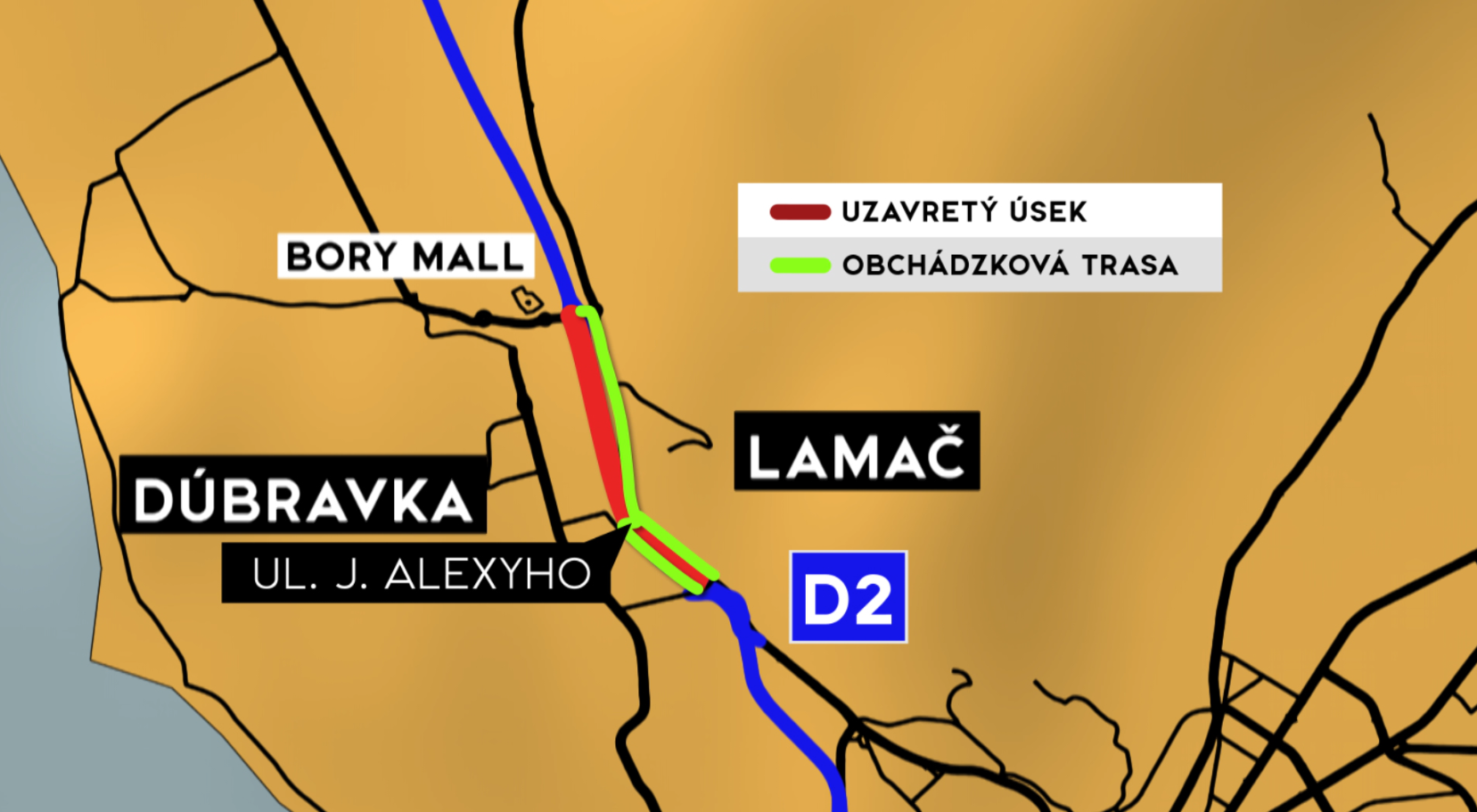 Úplná uzávera čaká aj úsek diaľnice D2 medzi tunelom Sitina a križovatkou Bory v Bratislave. Začne sa v sobotu o 22:00 a potrvá do nedele do 5:00 ráno. Dôvodom je demontáž a montáž portálov dopravného značenia.