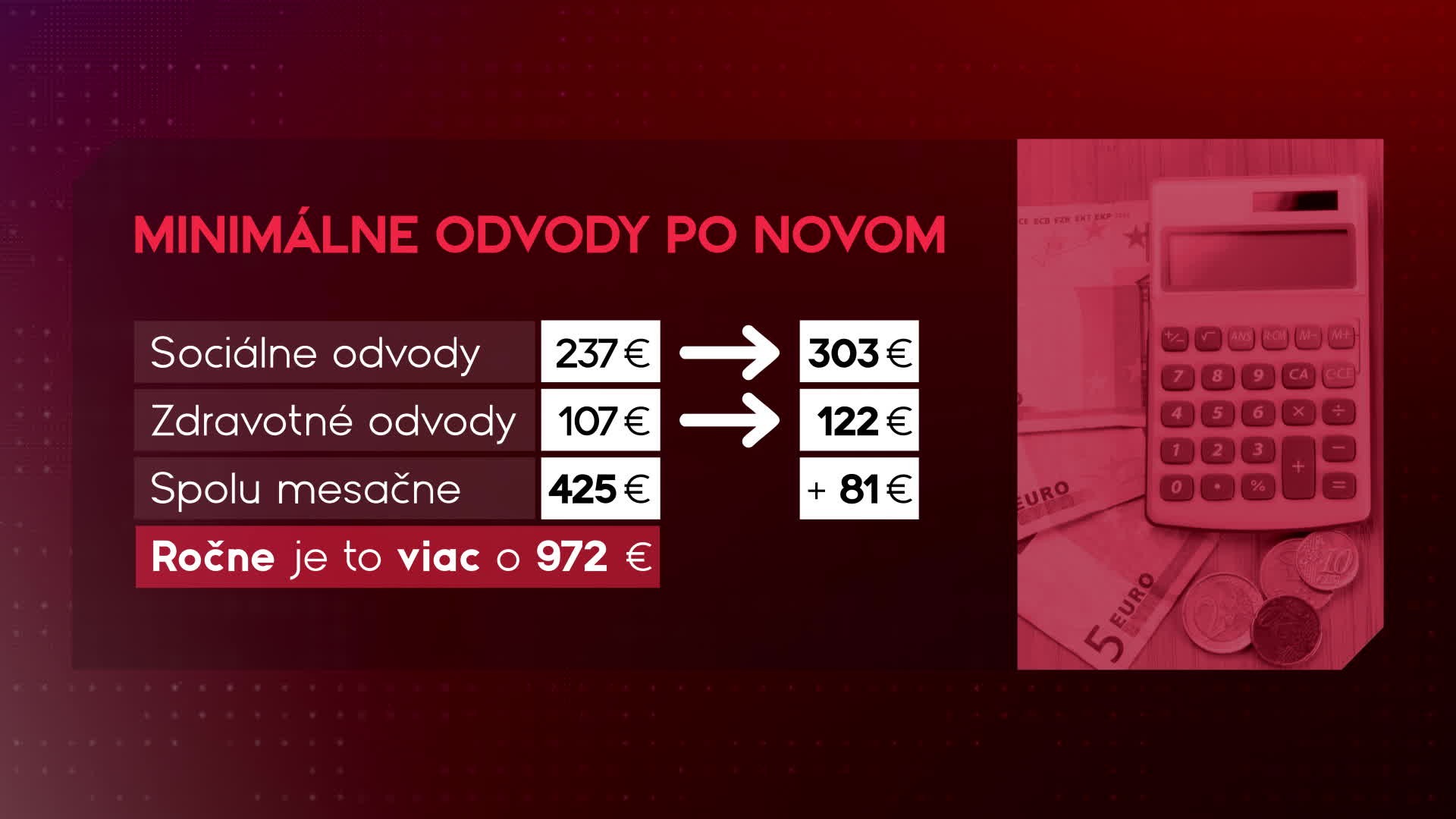 Čakajú ich totiž oveľa vyššie odvody. Ide pritom o približne 400-tisíc živnostníkov. A za zmenou stojí posledný konsolidačný balíček. "Minimálny mesačný vymeriavací základ pre platenie poistného pre SZČO, DPO a pre tých, ktorí si chcú doplatiť dôchodkové poistenie sa zvyšuje z 50% na 60% jednej dvanástiny všeobecného vymeriavacieho základu platného v kalendárnom roku," uviedol hovorca sociálnej poisťovne Martin Kontúr.