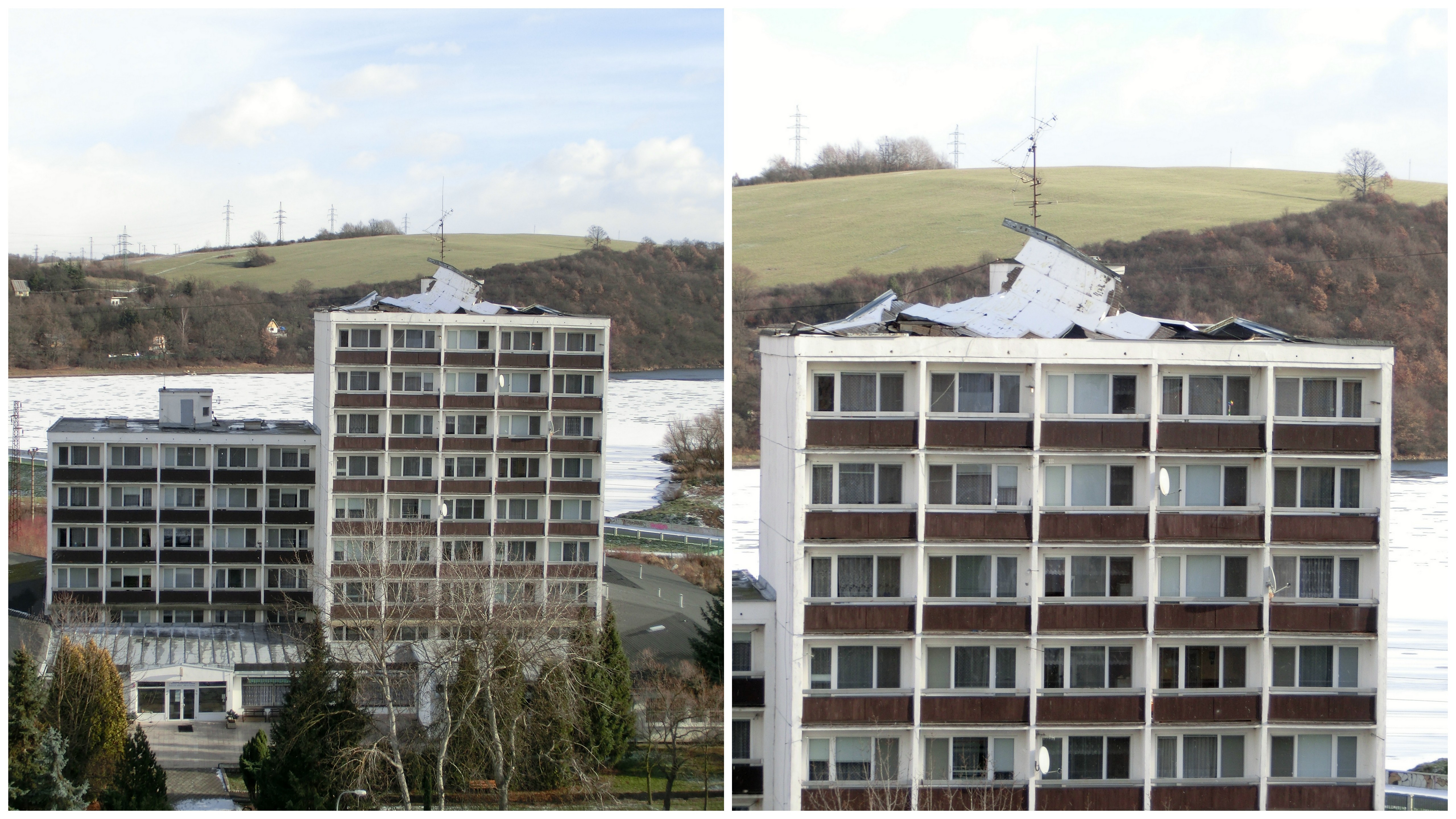 ZVOLEN / Pozostatok orkánu Xaver zrejme úradoval aj vo Zvolene. Vďaka silnému vetru odopadla strecha na Domove dôchodcov a sociálnych služieb v časti Záhonok. Fotografie pridal čitateľ prostredníctvom projektu tvojenoviny.sk Budeme si držať palce, aby nespôsobil ešte väčšie škody, podotkol.