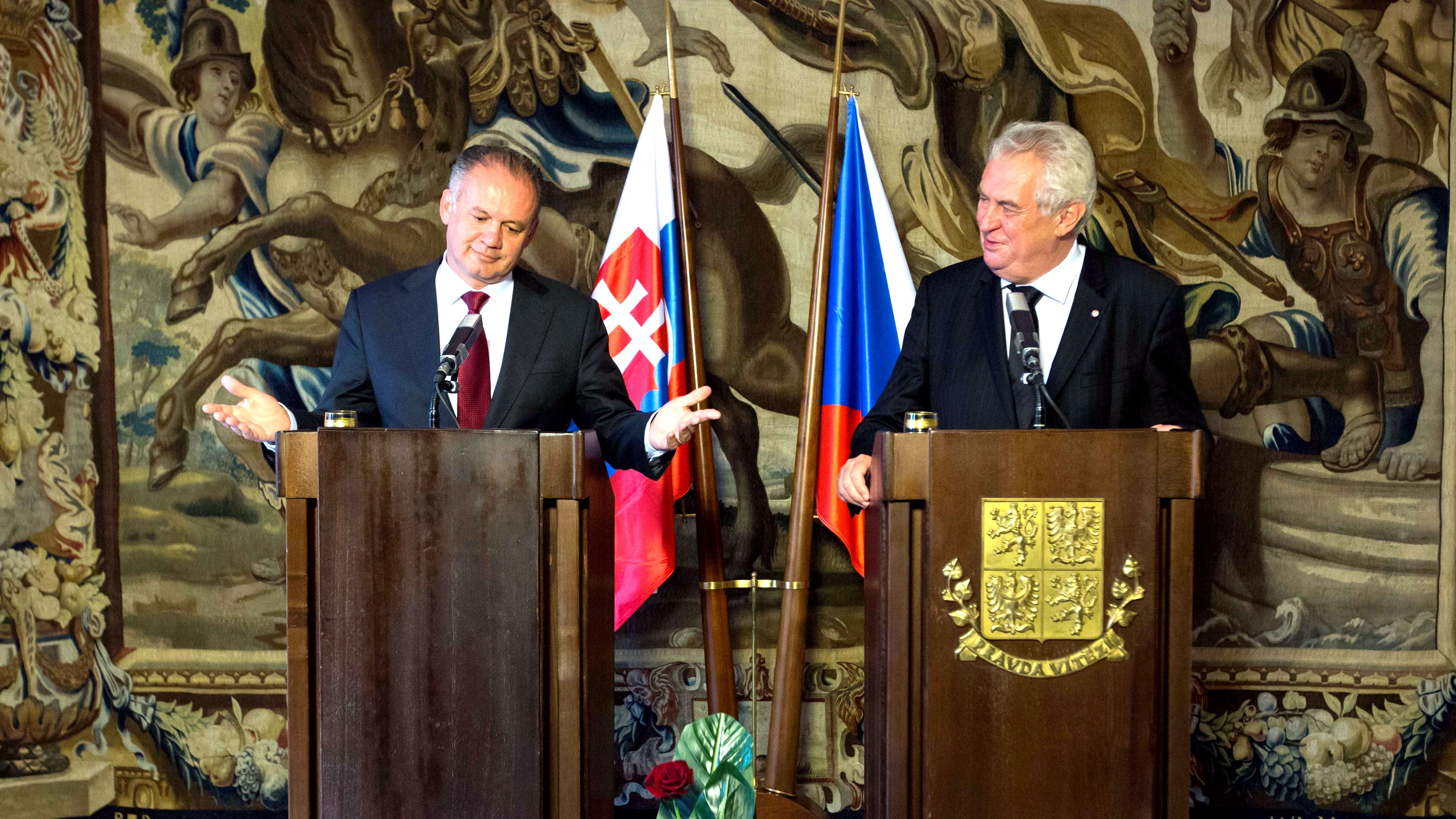 "Zhodli sme sa na tom, že vzťahy medzi oboma krajinami sú doslova excelentné," prehlásil český prezident. "Medzi našimi štátmi sú tak dobré vzťahy ako medzi žiadnymi inými štátmi v Európe," doplnil Kiska.