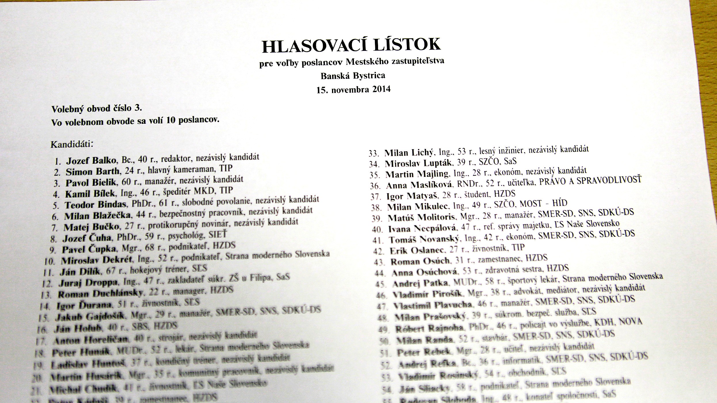 Druhý hlasovací lístok je pre voľby poslancov obecného, respektíve v meste mestského zastupiteľstva.