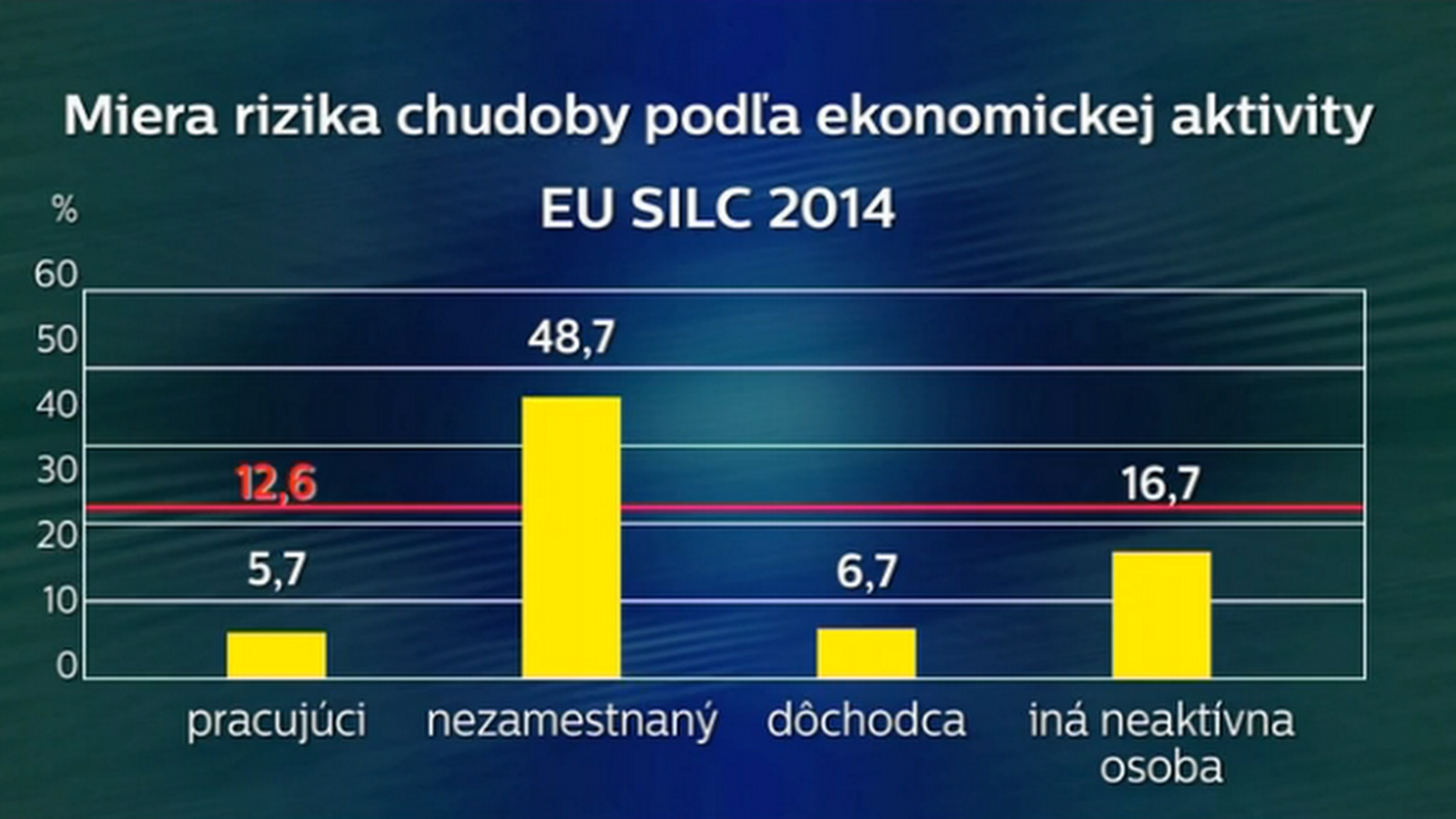 Najviac sú chudobou ohrození nezamestnaní. Až polovica z nich čelí tomuto riziku. Naopak nejmenej sa chudoba týka pracujúcich.