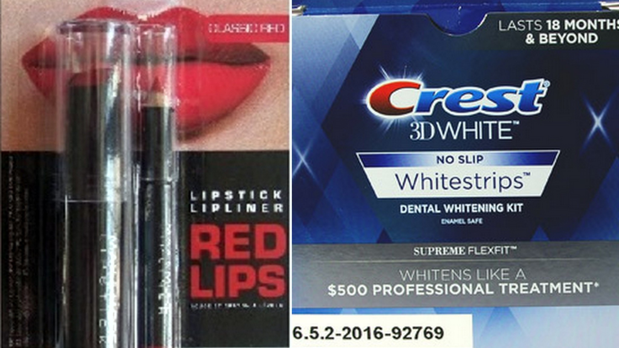 Druhým nebezpečným výrobkom sú pásiky na bielenie zubov Creast 3D White Whitestrips Supreme Flexfit, značky Creast zo Spojených štátov amerických výrobná dávka: 6225V44 s čiarovým kódom: 8971400046.