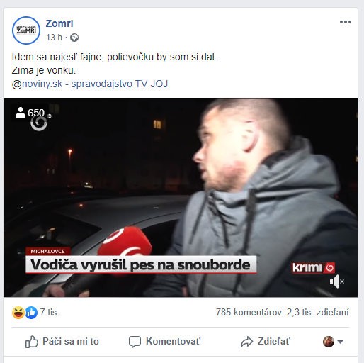 MICHALOVCE / Reportáž redaktorky TV JOJ Andrey Točenej vyvolala poriadny rozruch. Mladý muž v nej mal naraziť do zaparkovaného auta, pričom za všetko môže "zázračný pes" na snowboarde, ktorý mu nielen šteká do ucha, ale občas prepne aj rádio.