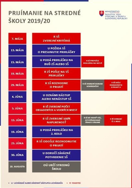 Rodič sa záväzne rozhodne do 4. júna, na ktorú školu jeho dieťa pôjde. Do 5. júna riaditelia škôl zverejnia obsadenosť miest. Následne sa uskutoční do 23. júna druhé kolo prijímacích skúšok. Minister uviedol, že v septembri by sa malo rátať s presunmi, no nemali by byť masívne.