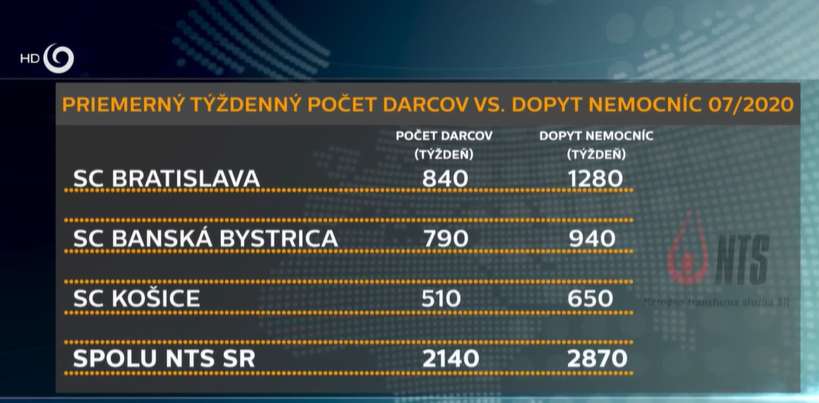 NTS hlási, že celkovo na Slovensku chýba na týždennej báze okolo 600 - 700 darcov.