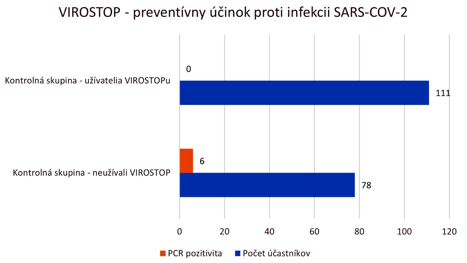 Na tomto základe, hoci vírus nebol u týchto účastníkov detekovateľný pomocou PCR testu, sa medzi užívateľmi prípravku VIROSTOP vyvinula signifikantne lepšia imunitná odpoveď. Je preto možné sa domnievať, že VIROSTOP znížil množstvo vírusu u účastníkov do takej miery, že už nebol detekovateľný pomocou PCR, ale imunitný systém vírus rozpoznal a vytvoril proti nemu špecifickú protilátku, ktorá bude mať pre pacienta do budúcna ochranný účinok v prípade ďalšieho nakazenia sa s Covid-19.