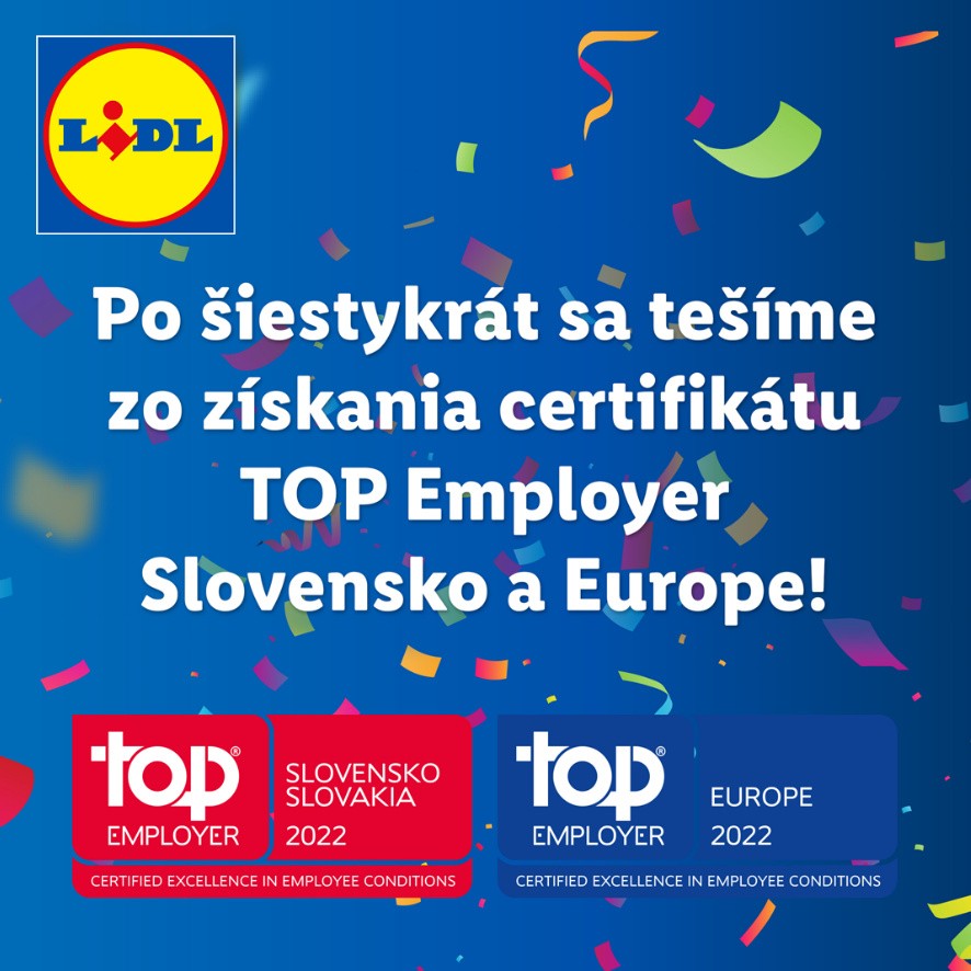 INZERCIA / Lidl je Daňovníkom roka po siedmy raz, ocenenie Top Employer získal šiestykrát. Motivačné finančné ohodnotenie, atraktívne benefity, rešpekt k diverzite či kariérny rast. To sú iba niektoré z charakteristík Lidla, vďaka ktorým je najoceňovanejším zamestnávateľom na Slovensku. Už po šiestykrát získal Lidl ocenenie Top Employer Slovensko a Top Employer Europe.