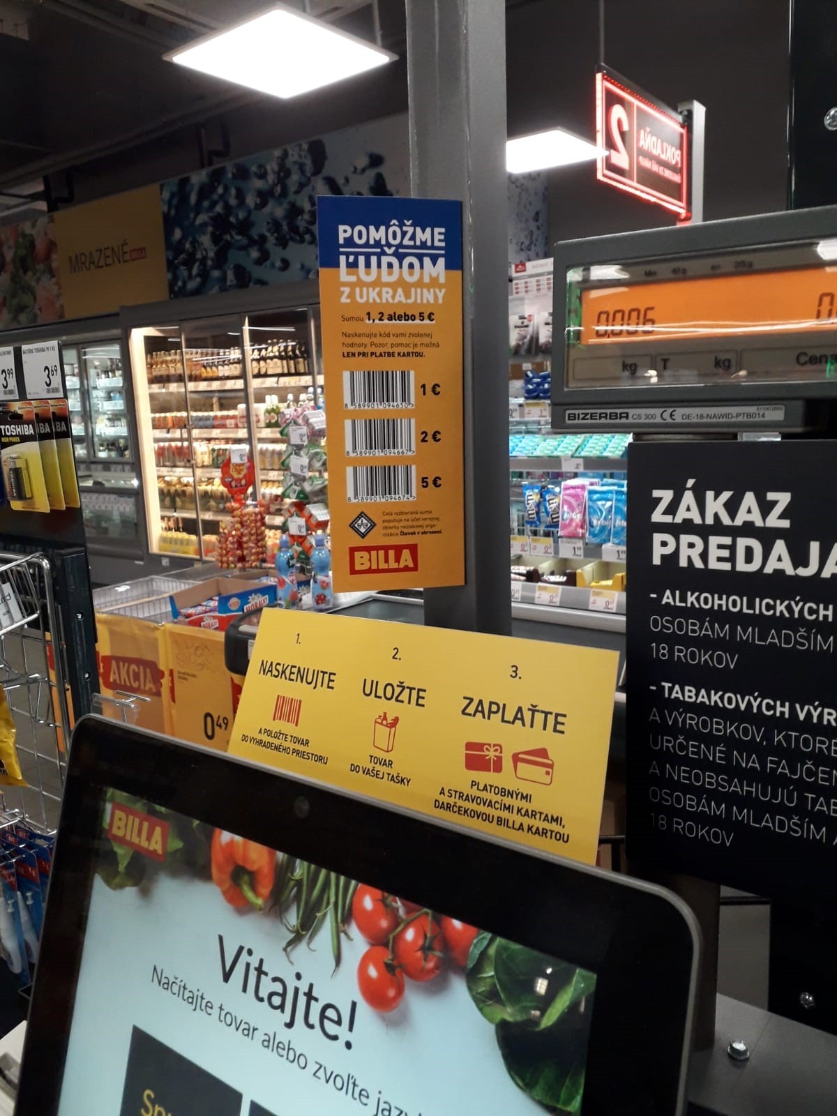 Preto od utorka 15. marca 2022 môže prispieť každý jeden zákazník v ktorejkoľvek predajni BILLA na celom Slovensku vskutku jednoduchým spôsobom, finančným príspevkom pri platbe kartou v hodnote 1€, 2€ alebo 5€. Pri samoobslužných kasách stačí naskenovať príslušný EAN kód, zvoliť platbu platobnou kartou, resp. elektronicky a darovaná čiastka bude zákazníkovi potvrdená priamo na pokladničnom bloku. Celá vyzbieraná suma poputuje na účet verejnej zbierky neziskovej organizácie Človek v ohrození.