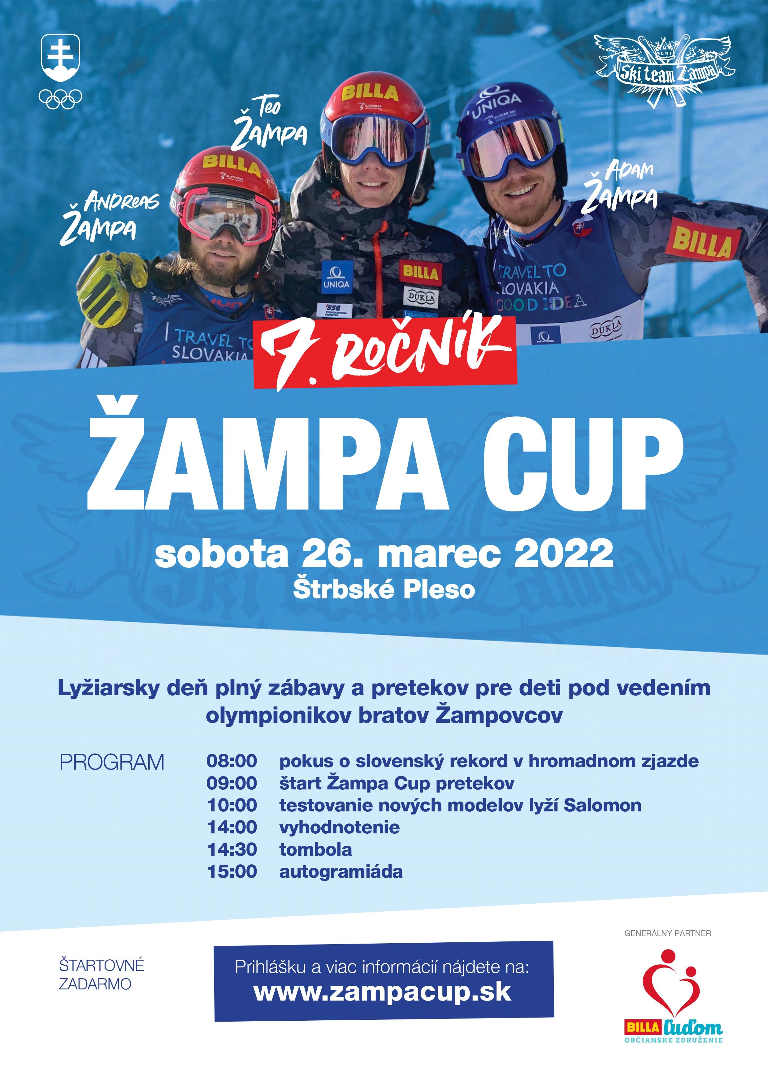 Tradícia ŽAMPA CUPu sa začala písať ešte v roku 2014, keď Adam a Andreas Žampovci, známi slovenskí lyžiari a ambasádori spoločnosti BILLA, usporiadali vlastné detské preteky. „Viesť deti k pohybu je investícia na celý život, navyše, ak sú tieto aktivity spojené s veľkou dávkou zábavy, o ktorú práve na ŽAMPA CUPe nie je rozhodne núdza. Sme radi, že môžeme byť partnerom týchto jedinečných pretekov, ktoré vystihujú aj náš cieľ. Sme rodinne orientovaná spoločnosť, ktorá oceňuje zdravý životný štýl a snaží sa svojich zákazníkov, ale aj zamestnancov viesť k pohybu v rozmanitých formách,“ uviedla Jana Gregorovičová, podpredsedníčka predstavenstva o. z. BILLA ľuďom.