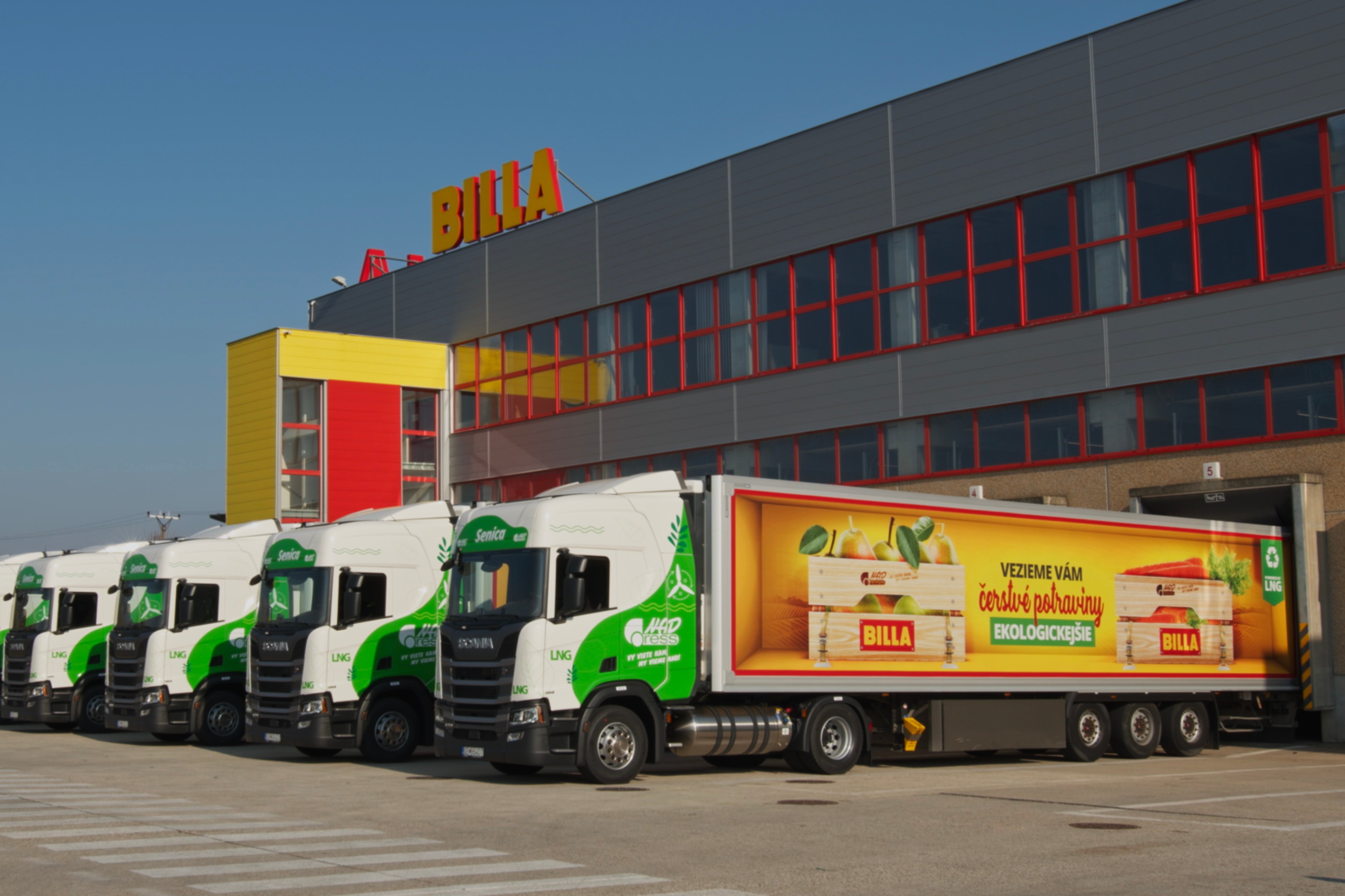 INZERCIA / Spoločnosť BILLA si plní svoj ekologický záväzok a je čoraz viac šetrná k životnému prostrediu. Najnovšie BILLA začala na prevoz potravín a iného tovaru využívať vozidlá spoločnosti NAD-RESS Senica, a.s. jazdiace na skvapalnený zemný plyn (LNG), ktoré do ovzdušia vypúšťajú výrazne menej emisií. Jeden LNG kamión s najazdenými 125 000 kilometrami ročne ušetrí takmer 40 ton emisií oxidu uhličitého v porovnaní s dieselovými motormi. BILLA plánuje zásobovať svoje predajne po celom Slovensku flotilou 70 eko kamiónov.