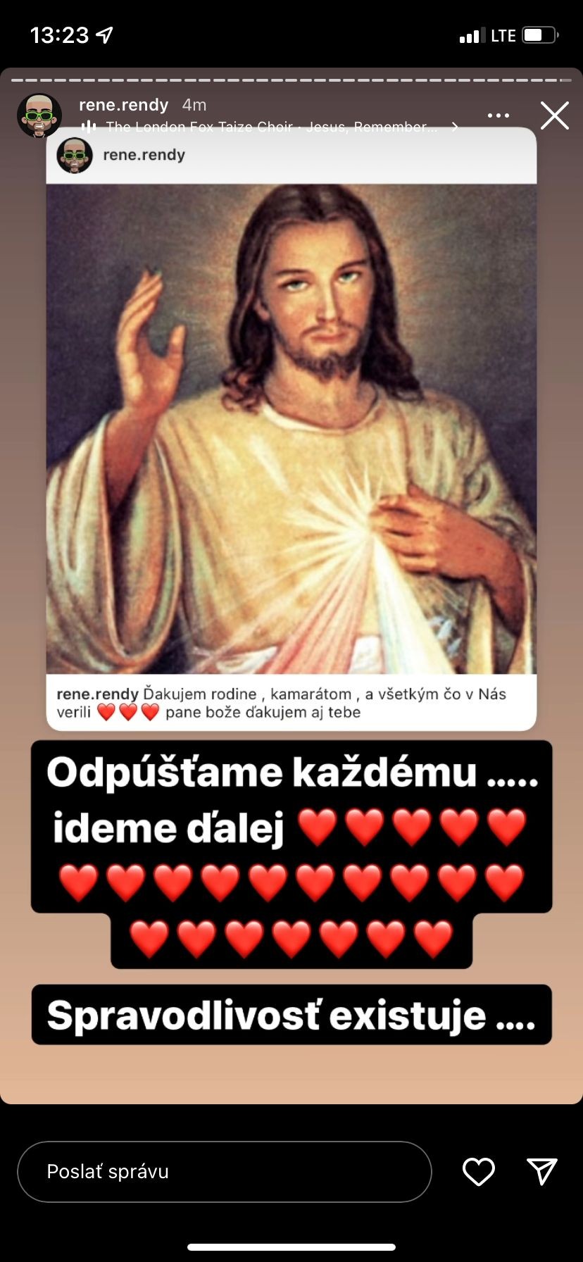 Manžel Plačkovej René Rendy Strausz pridal na instagram fotografiu, ku ktorej napísal, že všetkým odpúšťajú, a že spravodlivosť existuje.