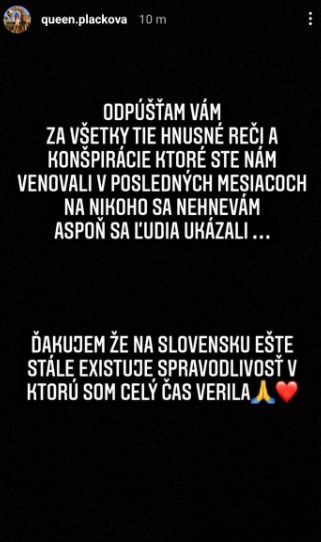 Zuzana Plačková sú spolu so svojim manželom aktuálne v zahraničí, kde sa o zrušení obvinenia dozvedeli. Na svoj instagram pridala video, na ktorom plače.