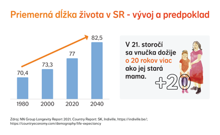 Vďaka vede, technológiám a modernej medicíne žije každá generácia o niekoľko rokov dlhšie. Od roku 1980 sa priemerná dĺžka života zvýšila o 7 rokov, na aktuálnych 77 rokov. V roku 2040 presiahne priemerný vek dožitia hranicu 80 rokov. Tento trend je možné vyjadriť aj jednoduchým príkladom. Dnešní školáci sa dožijú o 20 rokov viac ako ich starí rodičia.