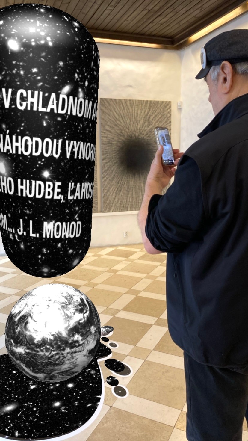 „Rozšírená realita ponúka interaktívny zážitok, ktorý prepája reálny svet s digitálnym - resp. s počítačovo generovaným obsahom. V tomto prípade zobrazuje realitu doplnenú o digitálnu verziu rotujúceho 3D objektu výkričníka. Bodku tvorí fotografia zemegule (jedna z prvých, realizovaných z vesmíru) a vrchnú časť znaku tvorí fragment kozmického priestoru. Dielo je doplnené výrokom držiteľa Nobelovej ceny Jacqua L. Monoda.Vznik diela Výkričník v rozšírenej realite sme iniciovali v rámci Art Fondu v spolupráci s pánom Sikorom aj preto, aby sa výzva na zodpovednosť za stav planéty a životného prostredia dostala aj medzi mladšie generácie." hovorí Kristína Zaťko Jarošová, riaditeľka ART FOND, umeleckej zbierky 365.bank.