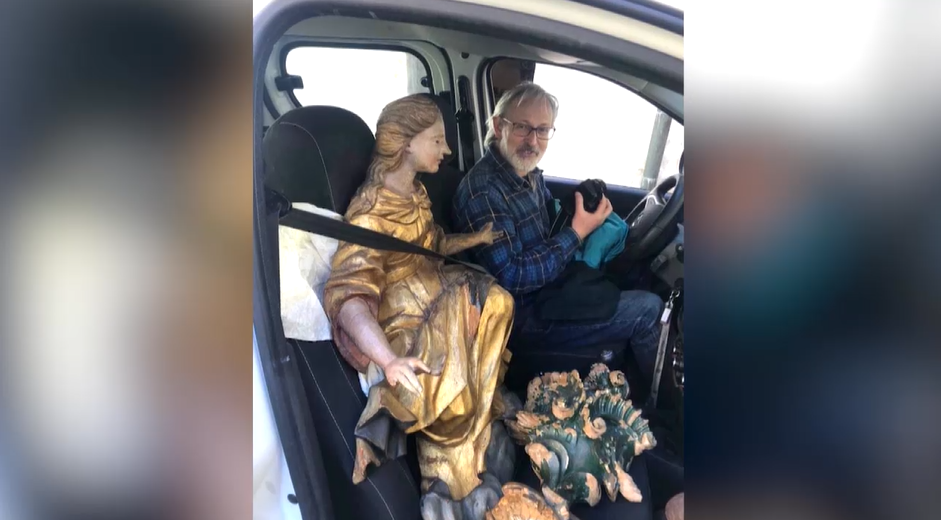 Zo zadymenej galérie ľudia vynášali expozíciu aby ju ochránili pred plameňmi. "Logicky som sa pridal do ľudskej reťaze, ktorá bola vytvorená na záchranu," uviedol obyvateľ Pavel Fabian. Fotografia, na ktorej je v aute Pavel Fabian so sochou obletela sociálne siete. Socha, ktorú vtedy zachránil je na starom zámku ako stovky iných exponátov, ktoré ešte len čakajú na odborné ošetrenie.
