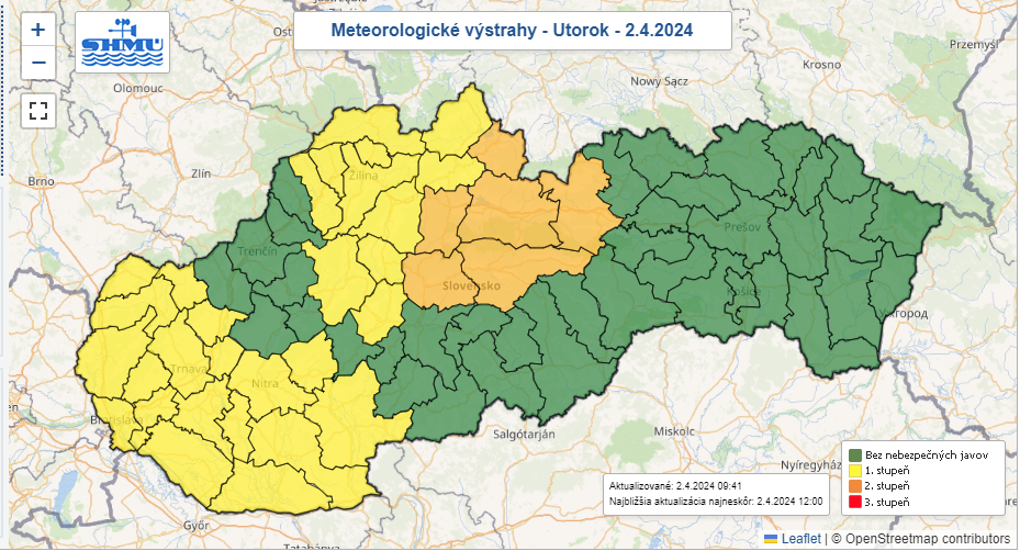 Meteorologické výstrahy na utorok (2.4.2024):