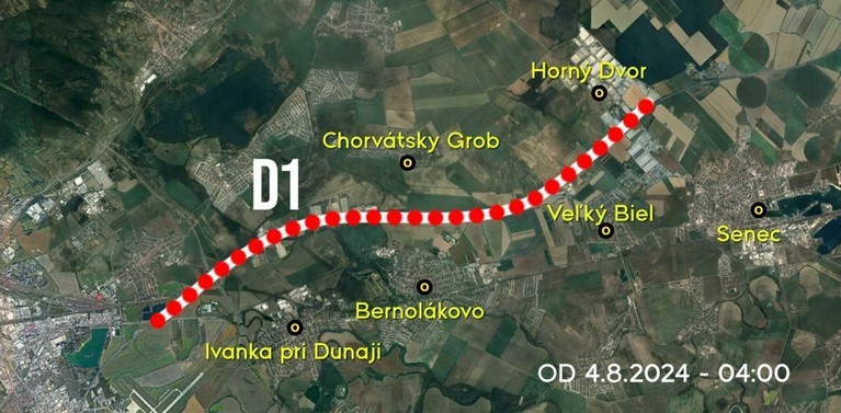 Niekoľkohodinová uzávera diaľnice v smere na Trnavu predstavovala druhú etapu prác na zmene dopravného režimu na tomto úseku. Postupné obmedzovanie dopravy sa začalo v nedeľu po polnoci. Počas uzávery na D1 sa vyznačili nové jazdné pruhy a dopravné značenia.