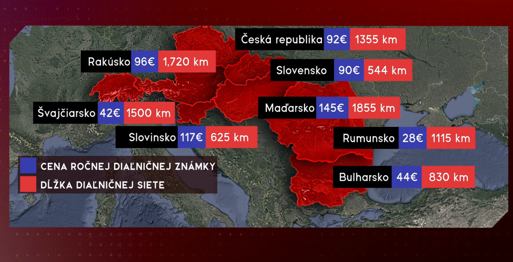 Tak si to porovnanie pozrime. Za diaľnice skutočne zaplatíme menej ako susedia, no prejdeme sa za to po oveľa kratšej diaľničnej sieti. Na Slovensku od roku 2022 nepribudol ani kilometer diaľnic. "My samozrejme tieto peniaze chceme využiť na výstavbu diaľnic pochopiteľne, i keď to zase, aby sme mali predstavu, to nie je nejaká dramatická suma do štátneho rozpočtu," dodal Choma.