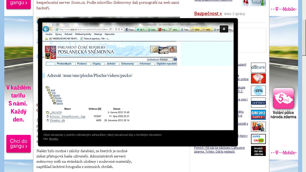 Len na konci minulého týždňa spustili nový web Poslaneckej snemovne v Českej republike. Iba pár dní stačilo hackerom na to, aby odhalili hneď niekoľko bezpečnostných dier. Kvôli nim sa môže prakticky ktokoľvek dostať do súkromných adresárov. Tie obsahujú programy, fotky i šteklivé filmy pre dospelých. Informácie priniesol portál novinky.cz. Podľa hovorcu Snemovne dali pornografiu na stránku samotní hackeri.
