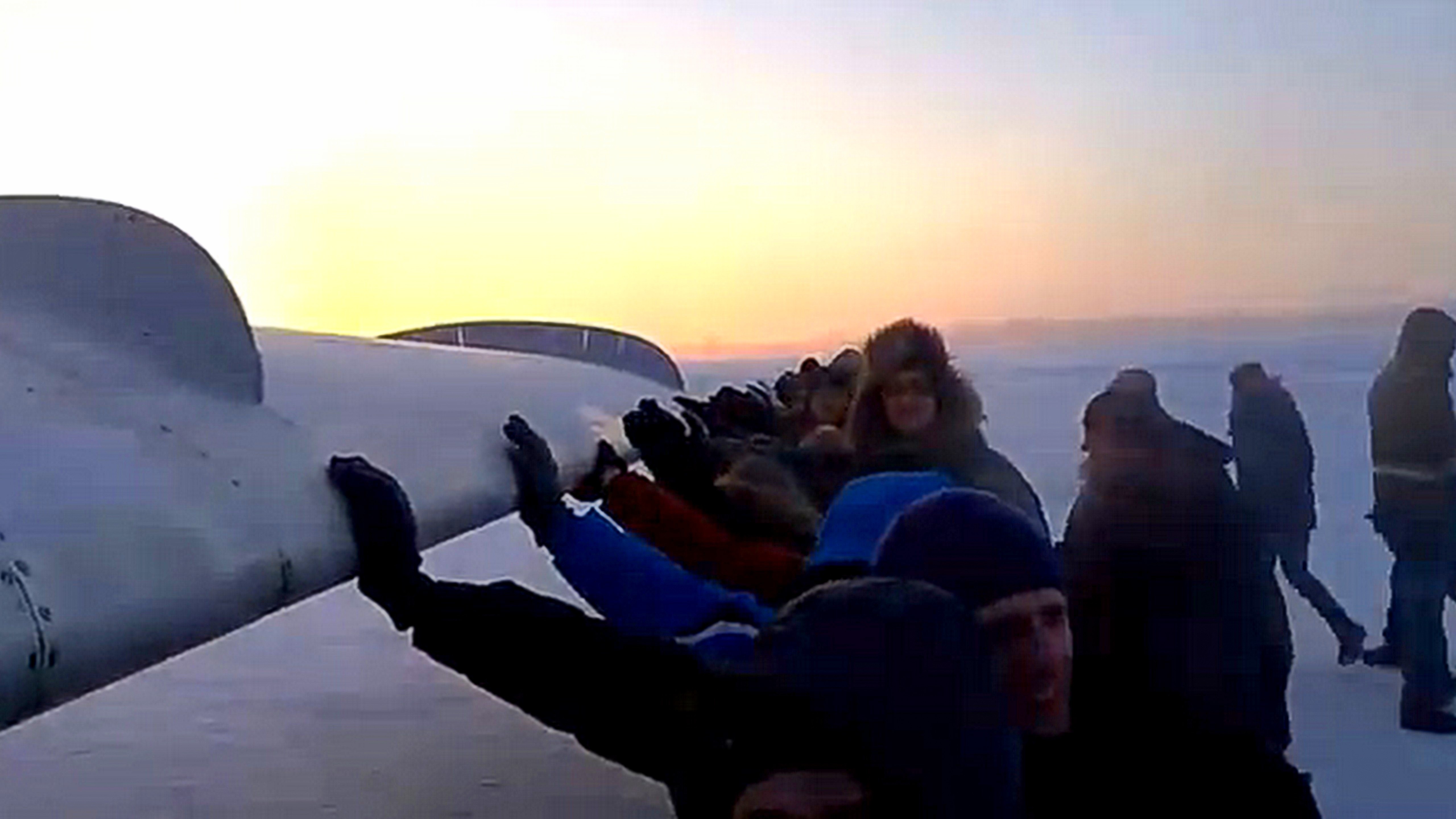 Pozrite sa, ako pasažieri tlačili zamrznuté lietadlo:
