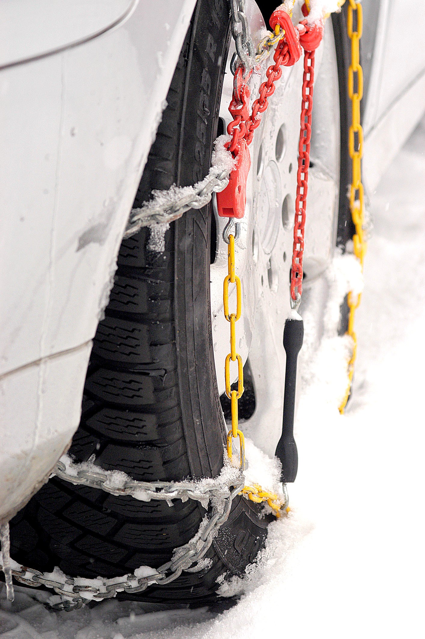 Potom je dobré posunúť sa s autom pár centimetrov dopredu a skontrolovať reťaze ešte raz a podoťahovať ich. Použiť na pneumatiky môžete aj takzvané papuče alebo autoponožky. Dobré sú skôr do mesta a na ujazdený sneh.