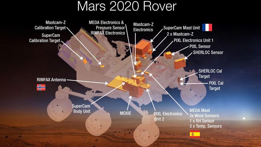 Novinkou bude zariadenie SuperCam, ktoré vďaka chemickému a mineralogickému rozboru dokáže zistiť organické látky v povrchových horninách.