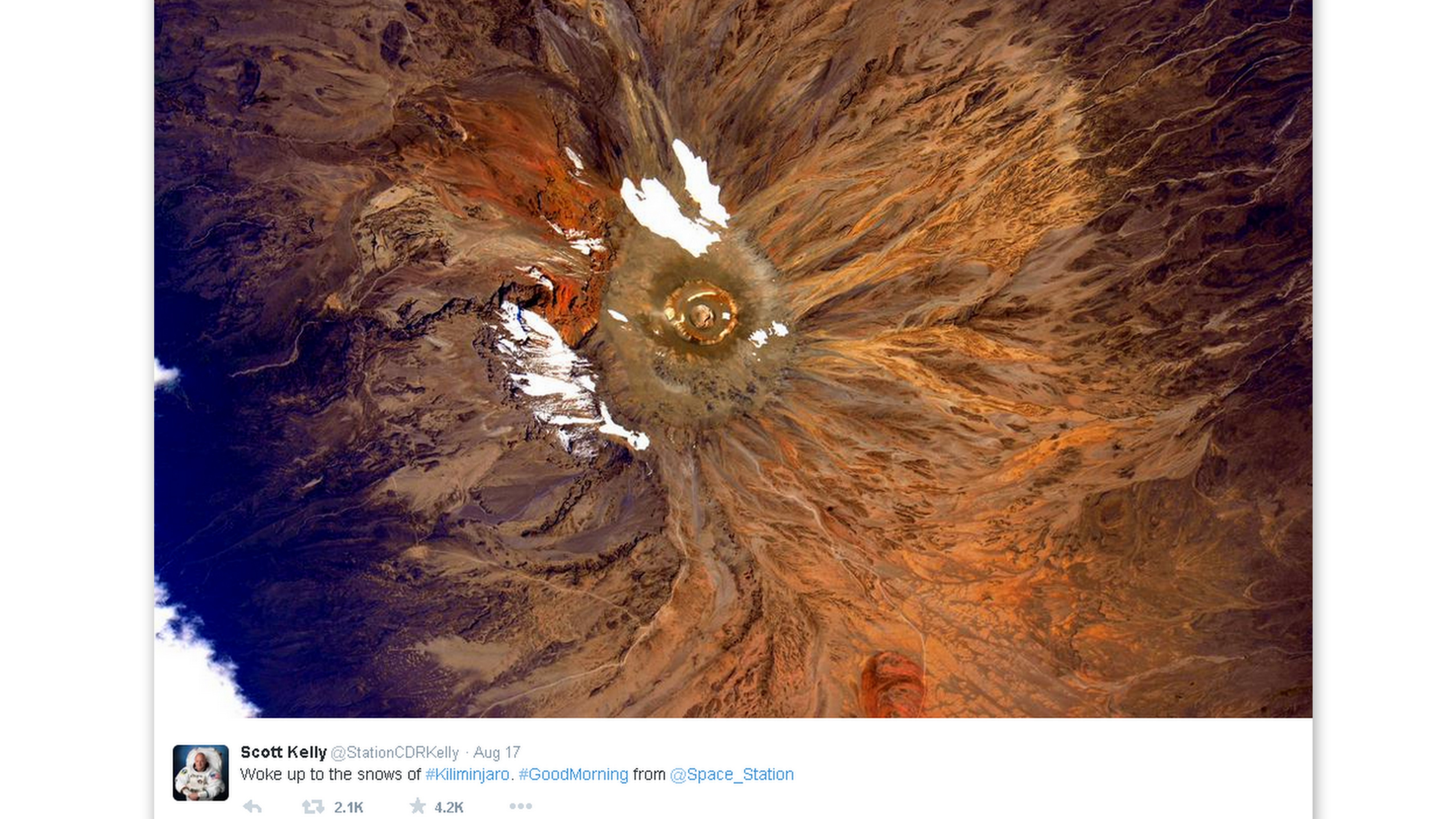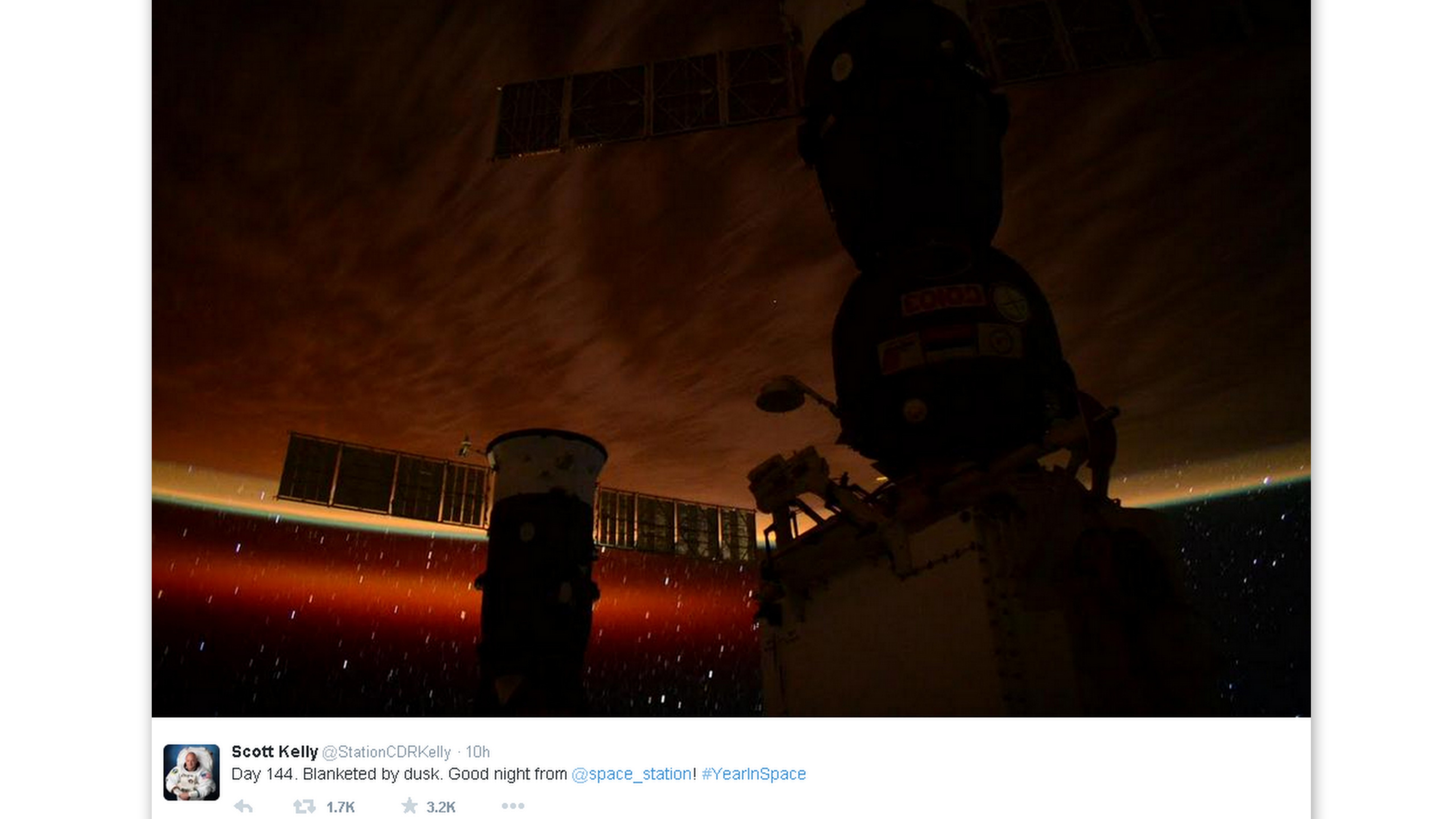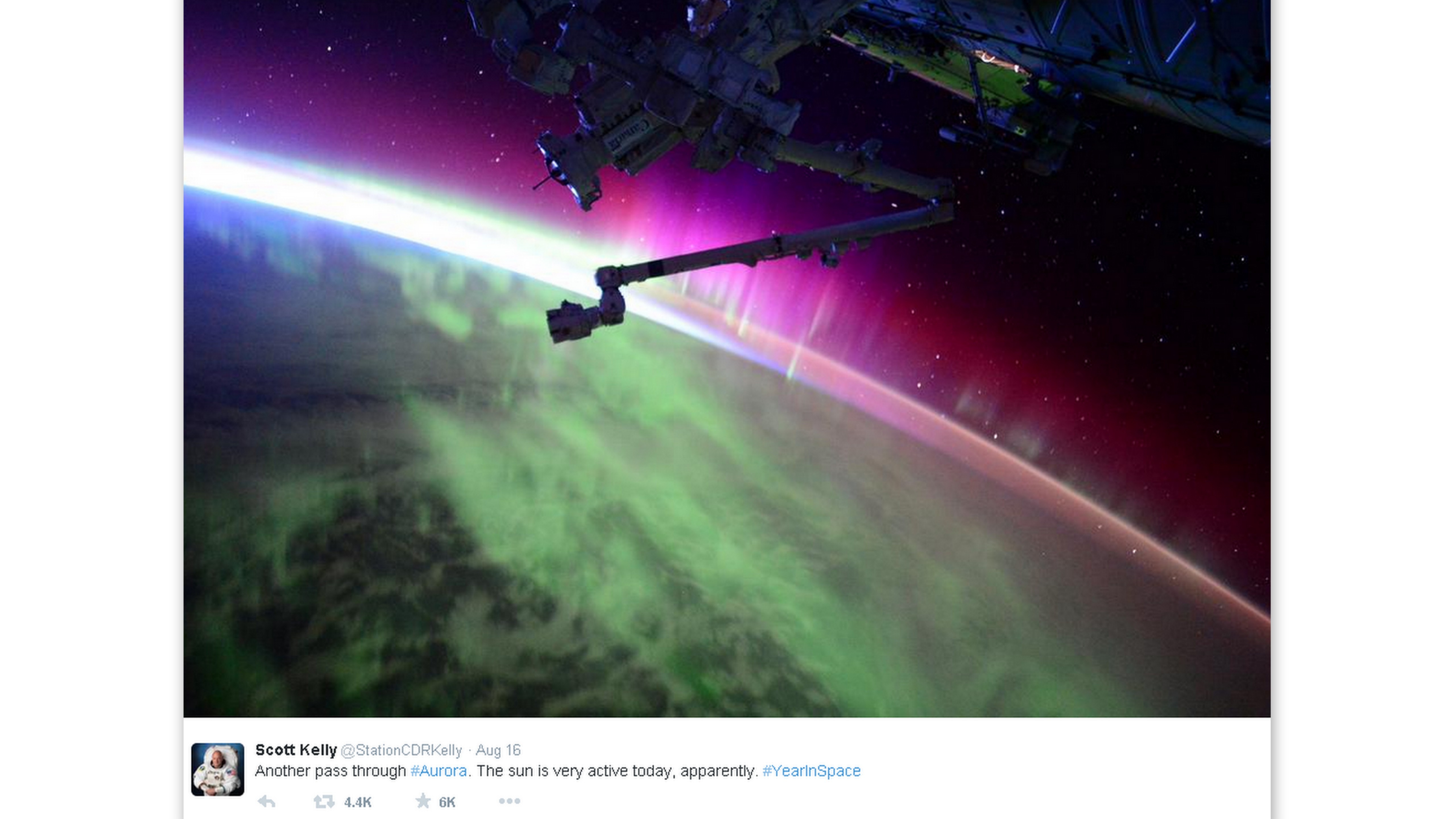 Scott Kelly je pravidelným prispievateľom na Twitteri a vesmírnych nadšencov zásobuje obrázkami javov, ktoré sa odohrávajú nad našimi hlavami.
