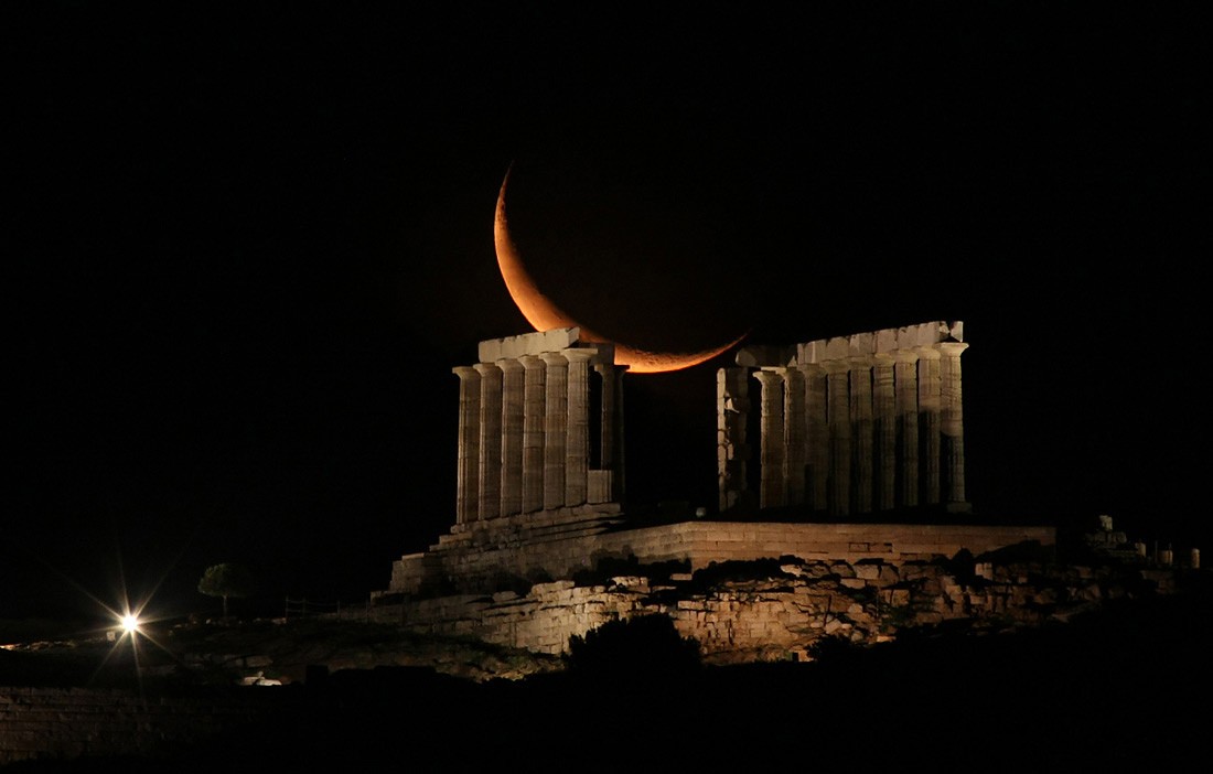Mesiac nad Poseidonovým chrámom (Elias Chasiotis/ESPOD)