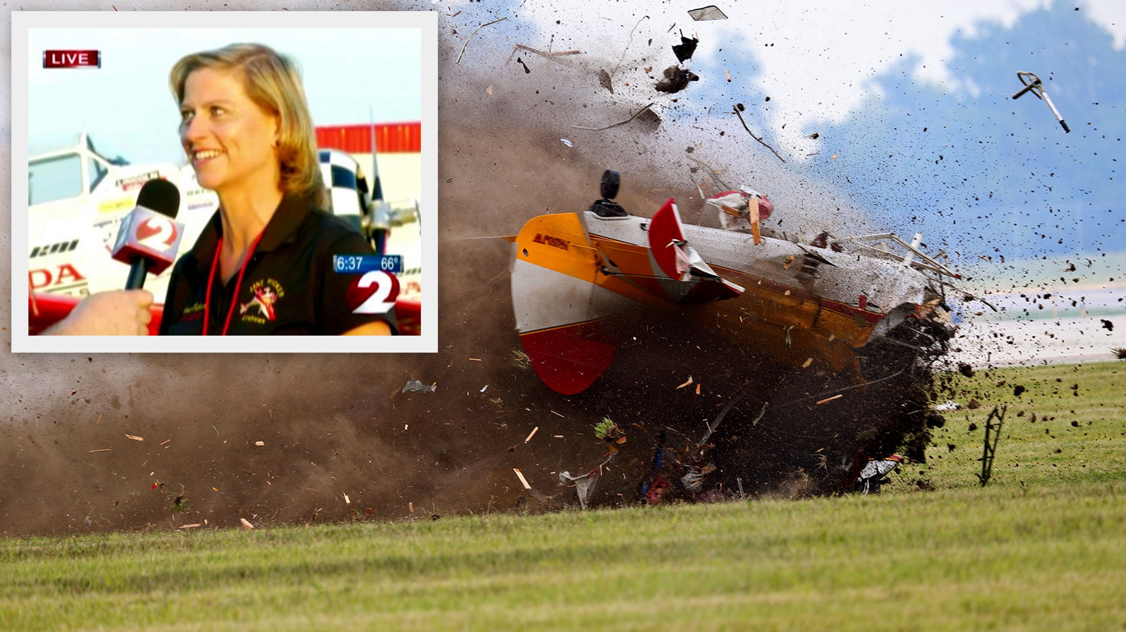 DAYTON / 44-ročná akrobatka Jane Wicker chcela presvedčiť divákov na leteckom dni, že dokáže zdanlivo nemožné. Vystúpením na krídle lietadla spočiatku davy zvedavých návštevníkov ohúrila. S pilotom však hazardovali až príliš a ich vystúpenie skončilo tragicky pre oboch z nich. Tesne pred začiatkom vystúpenia stihla skúsená gymnastka poskytnúť svoj posledný rozhovor...