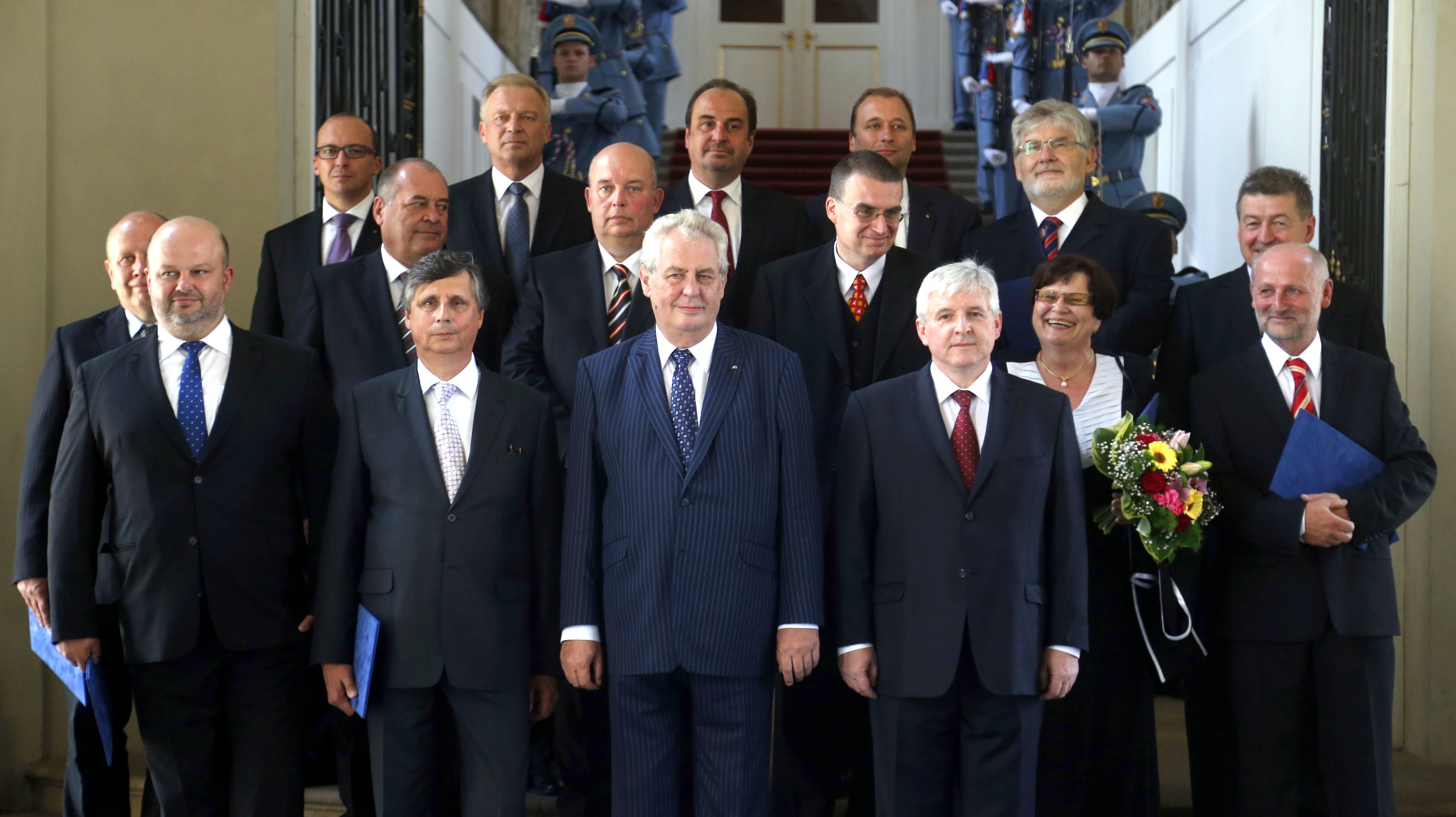 V novej vláde je iba jedna žena, ministerka spravodlivosti Marie Benešová, a jeden expremiér, neúspešný kandidát na prezidenta, vicepremiér a minister financií Jan Fischer. Po svojom vymenovaní položila nová vláda veniec k hrobu Tomáša Garrigua Masaryka v Lánoch, podobne ako Zeman, keď sa stal predsedom vlády, informovala Česká televízia.Následne sa zíde v Strakovej akadémii na svojom prvom zasadnutí a potom ministri osobne prevezmú svoje rezorty, uviedla ČT24.