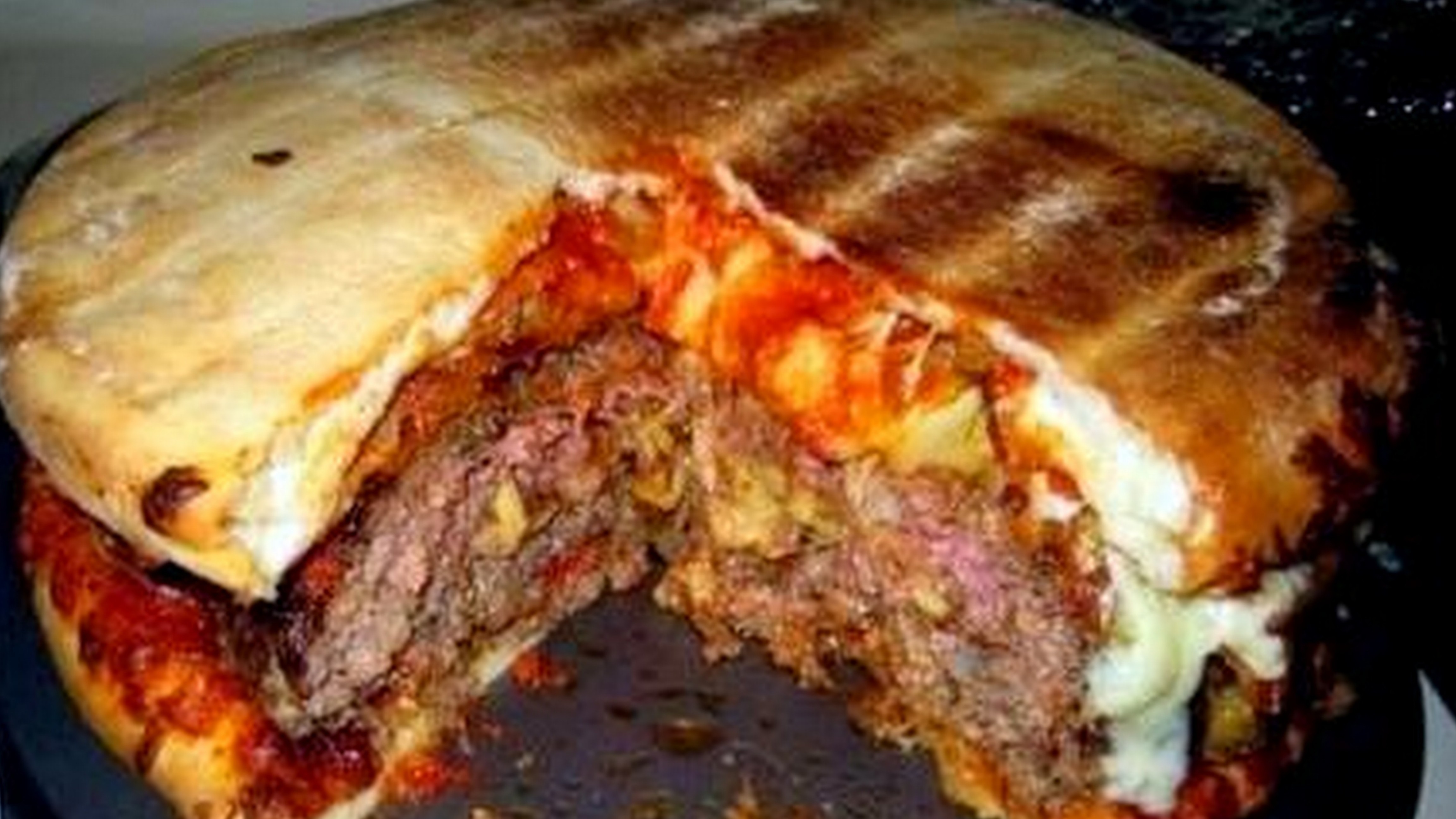 Ďalšie spojenie dvoch obľúbených jedál. Jeho príprava je jednoduchá. Pripravíte si dve obľúbené pizze, medzi ktoré vložíte obrovský hamburger z hovädzieho mäsa a veľké množstvo kečupu alebo tatarskej omáčky. Nezabudnite aj na zdravú zeleninu.
