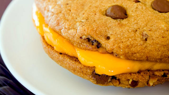 Obľúbené čokoládové sušienky cookies formou sendviču plneného grilovaným syrom.