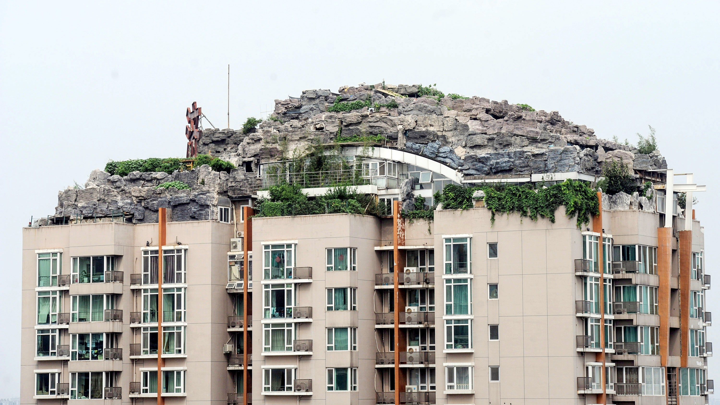 Teraz je však všetko inak. Pekingské úrady chcú zlikvidovať bizarné obydlie na streche 26-poschodového paneláku v Pekingu. Podľa správ médií patrí vila obklopená navŕšenými kameňmi, stromami a kríkmi nemenovanému magnátovi čínskej medicíny.